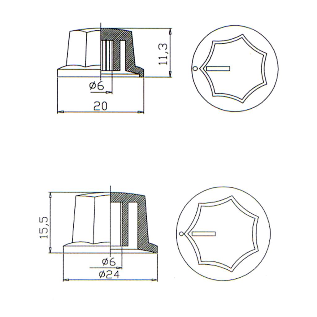 Large Knob (D x H): 24 x 15.5mm/ 0.94 x 0.61inch