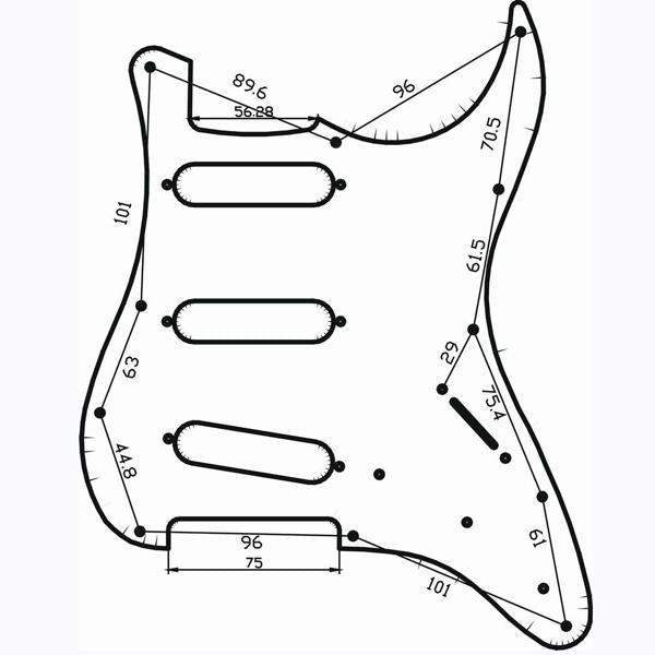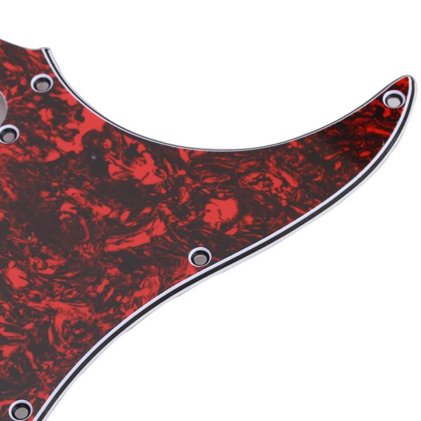 This red tortoise shell guitar pickguard is designed for most Stratocaster style guitar. It is finished with 3 ply white / black / white bevel edge and has 11 screw holes in the side of the pickguard. Great replacement for your broken, dirty or old guitar pickguard. Sure to make your guitar look new again!