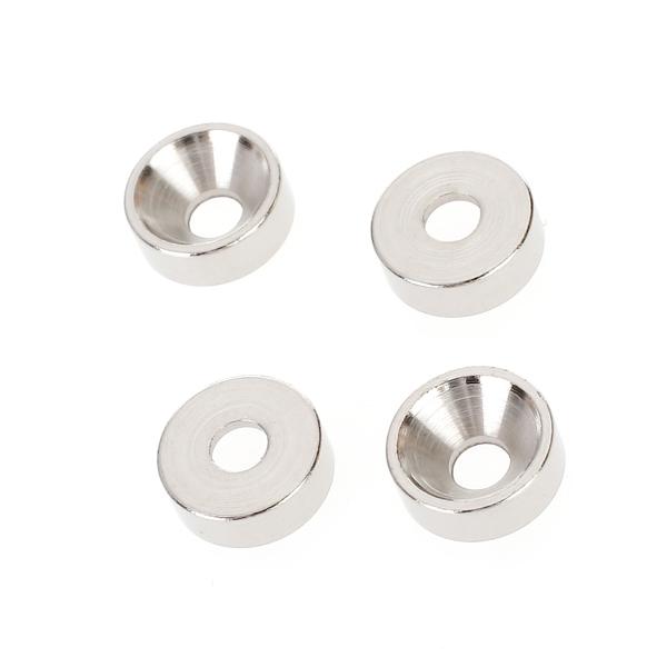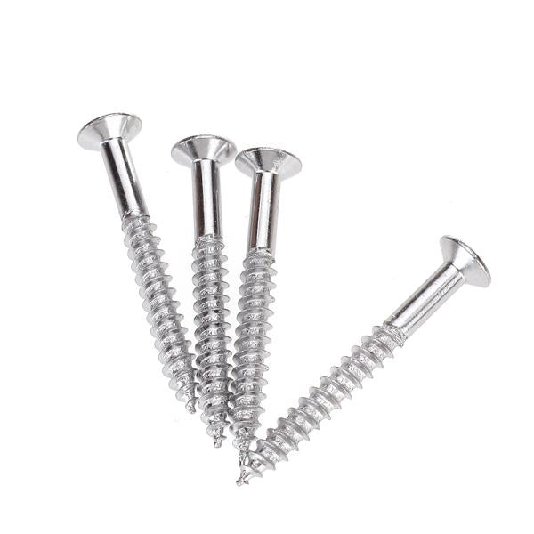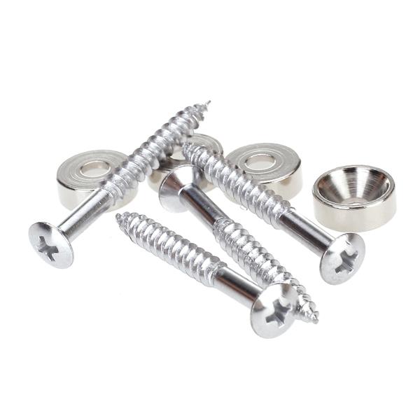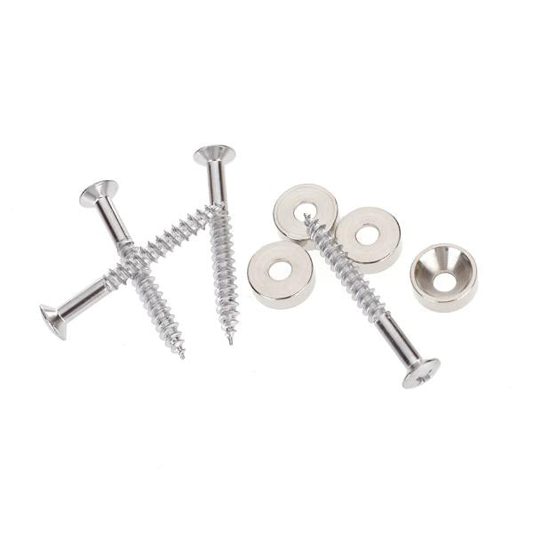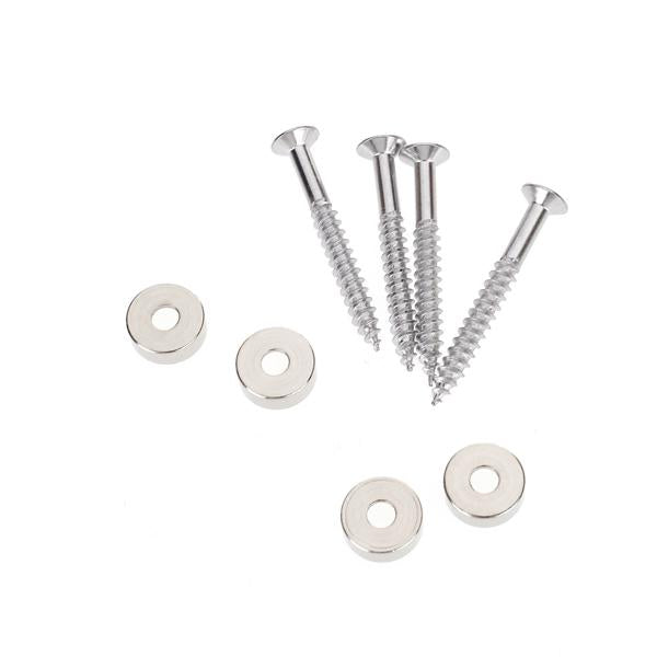This set of 4pcs neck joint ferrule bushing with matching screw is made of zinc alloy, with chrome color, solid and durable, is designed for guitar and bass. These 4pcs guitar bass neck joint ferrule bushing with matching screws are great guitar bass accessory.