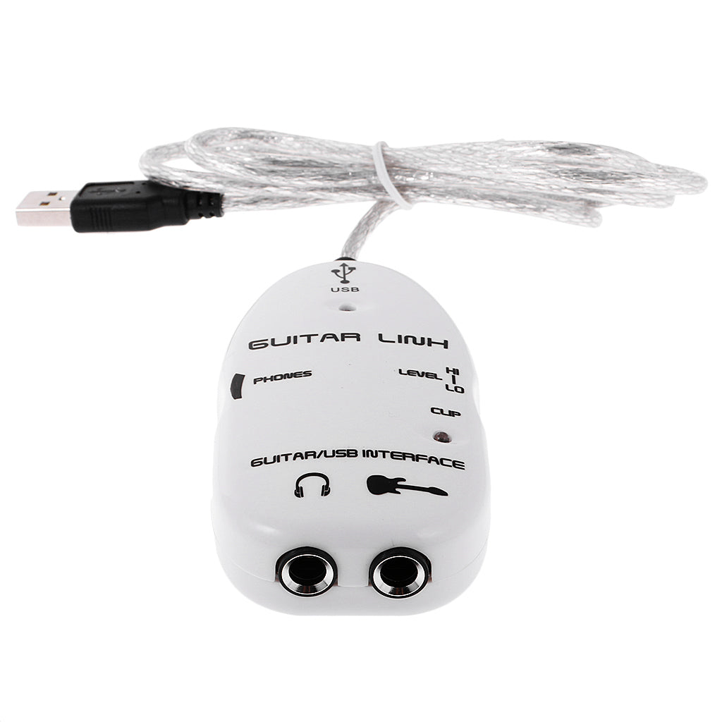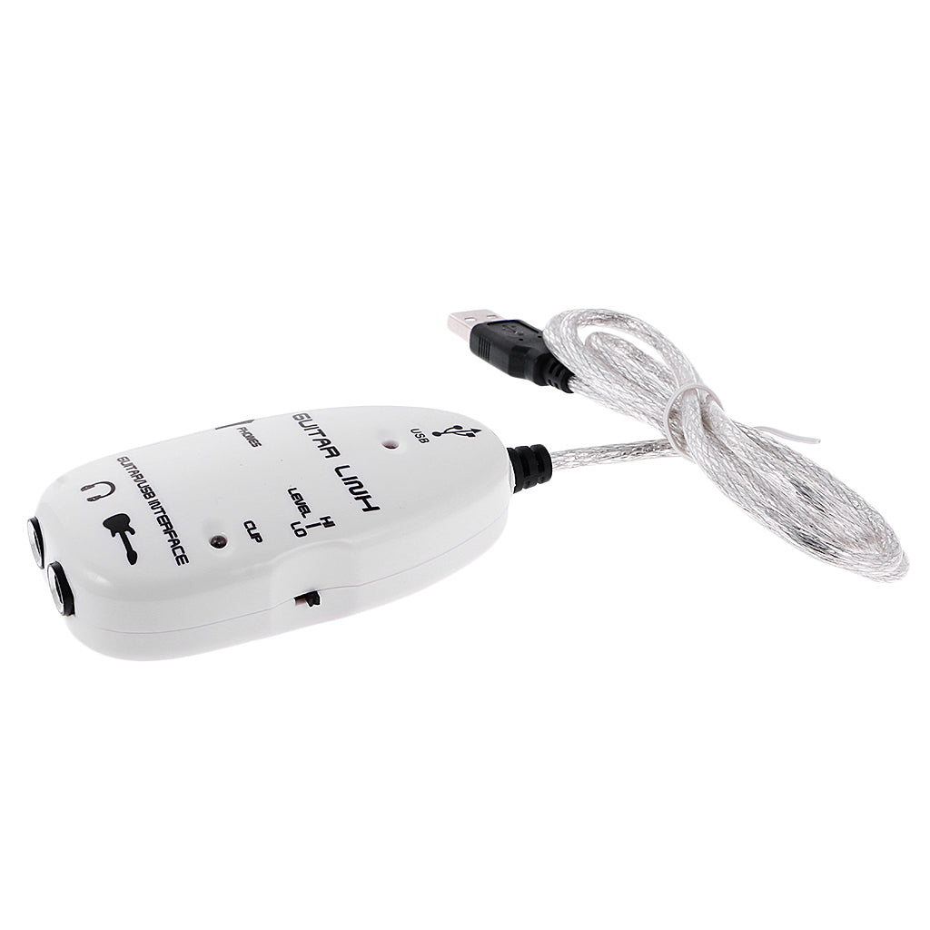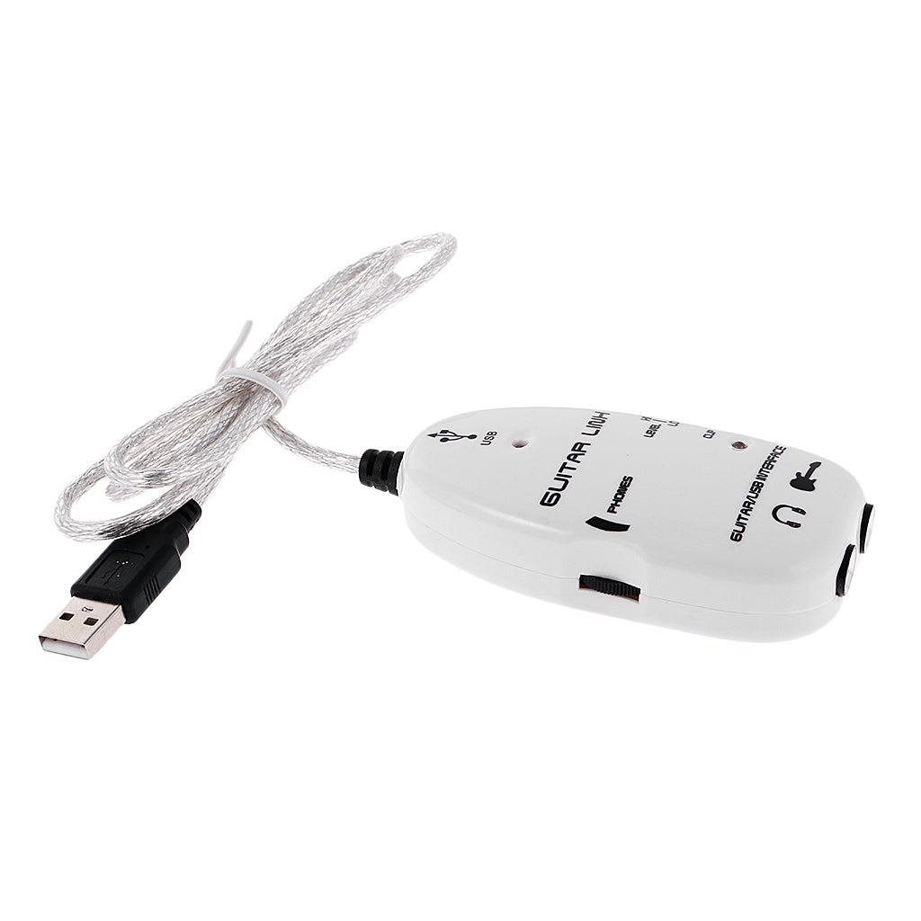 White USB Guitar Link Cable for PC&Mac Computer Recording Audio Studio Adapter