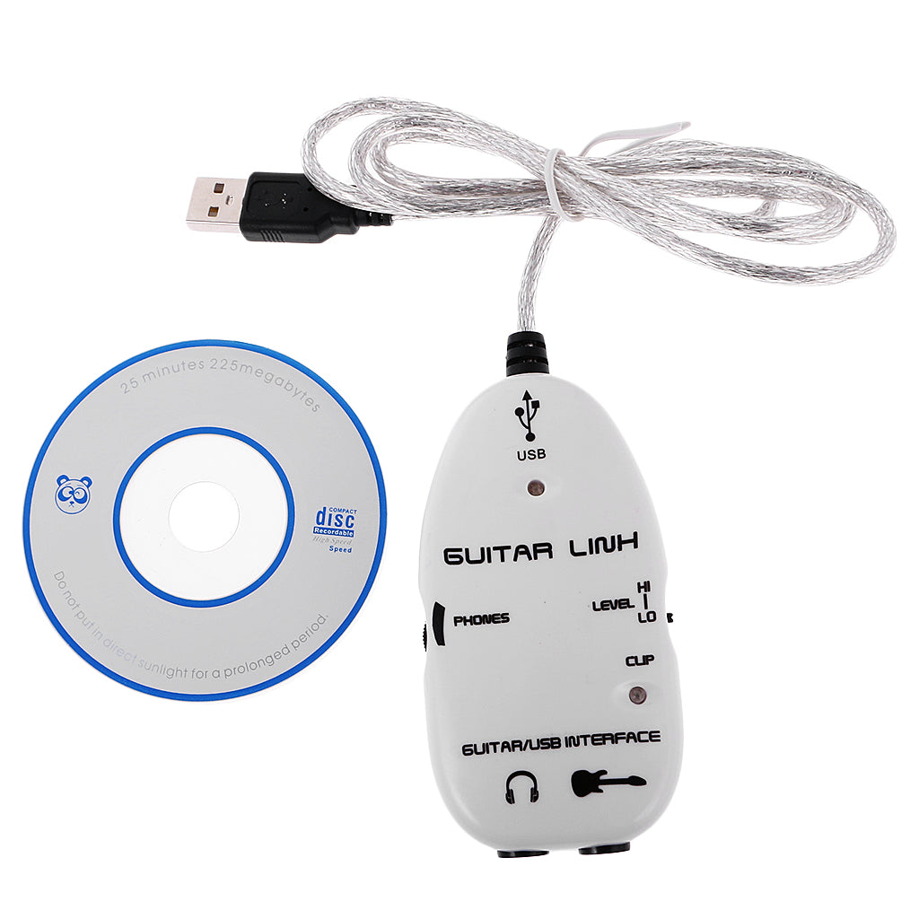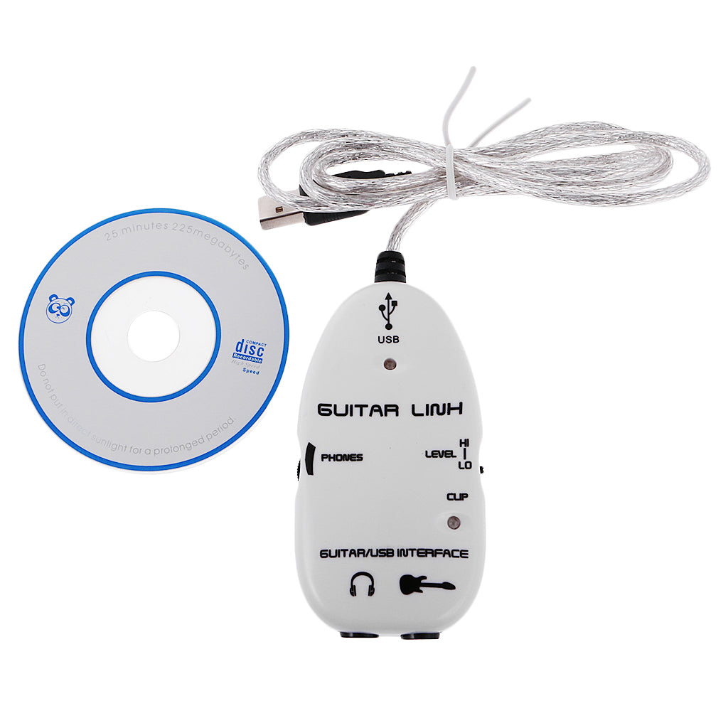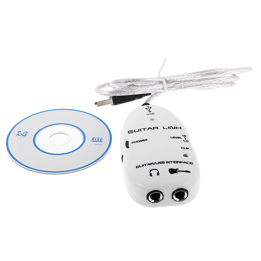 White USB Guitar Link Cable for PC&Mac Computer Recording Audio Studio Adapter
