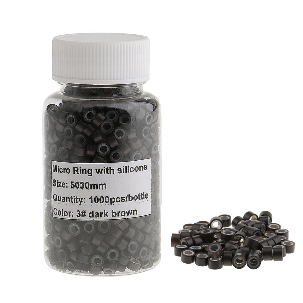 1000 Pieces Silicone Hair Extension Loop Micro Color Ring Beads Dark Brown