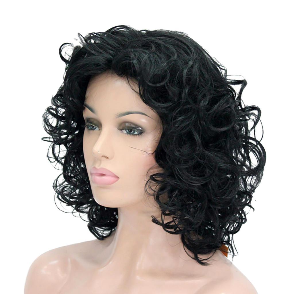 14" Elegant Women Short Fluffy Kinky Wavy Curly Synthetic Hair Wigs Black