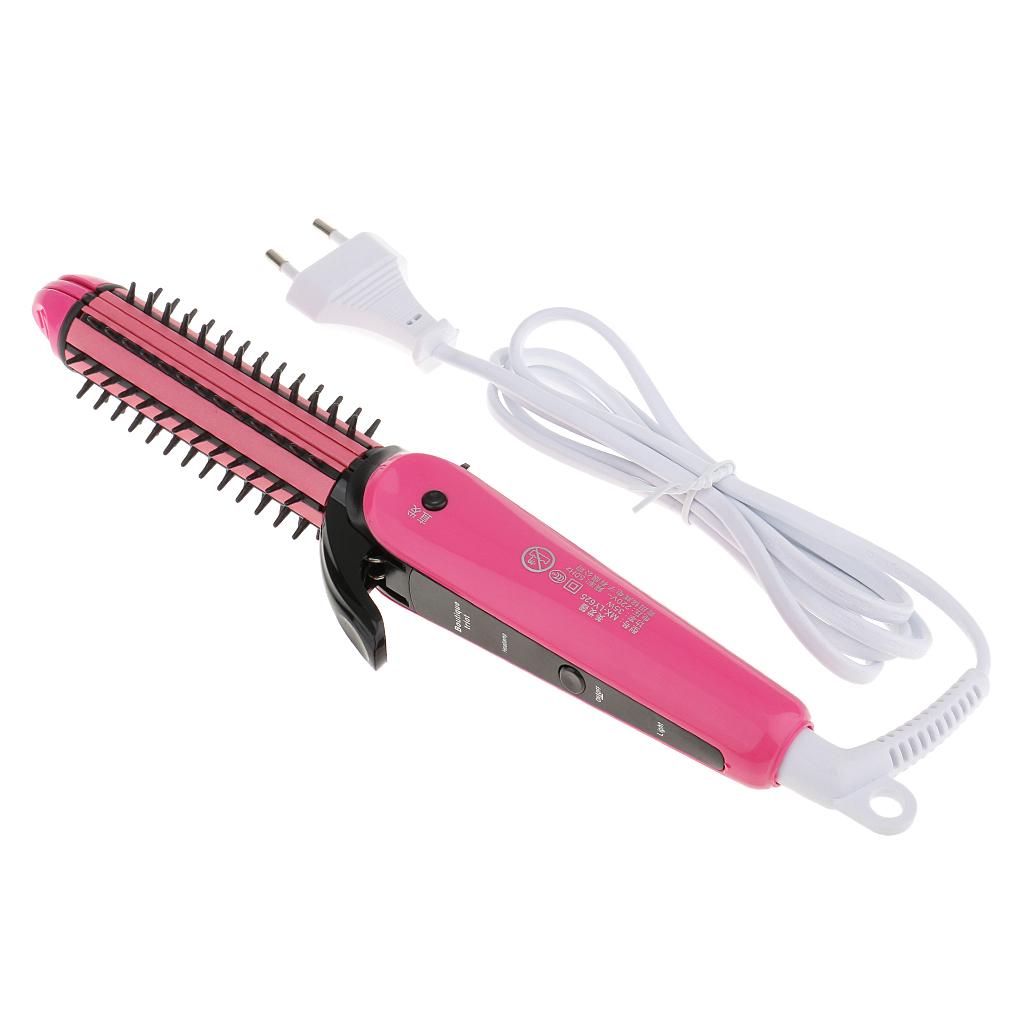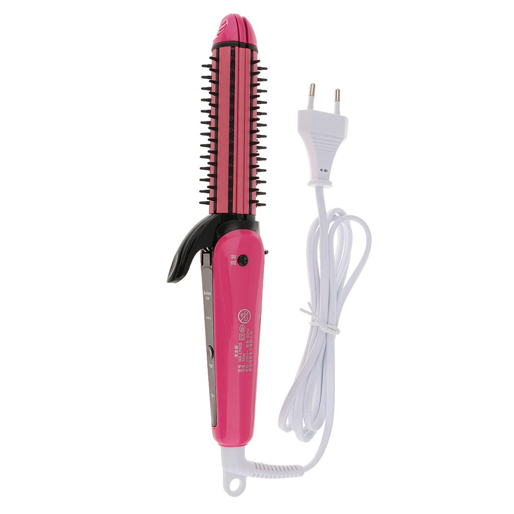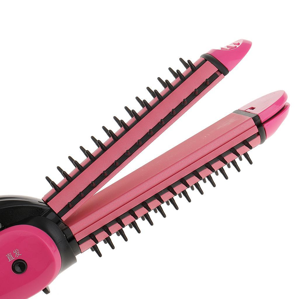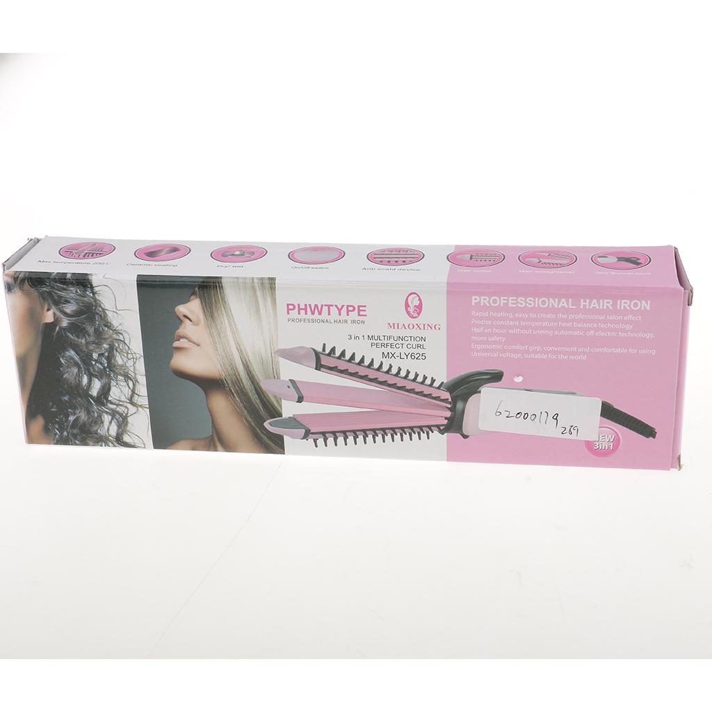 3 in 1 Electric Hair Straightener Curler Corn Wave Styler Iron Brush Rosy EU