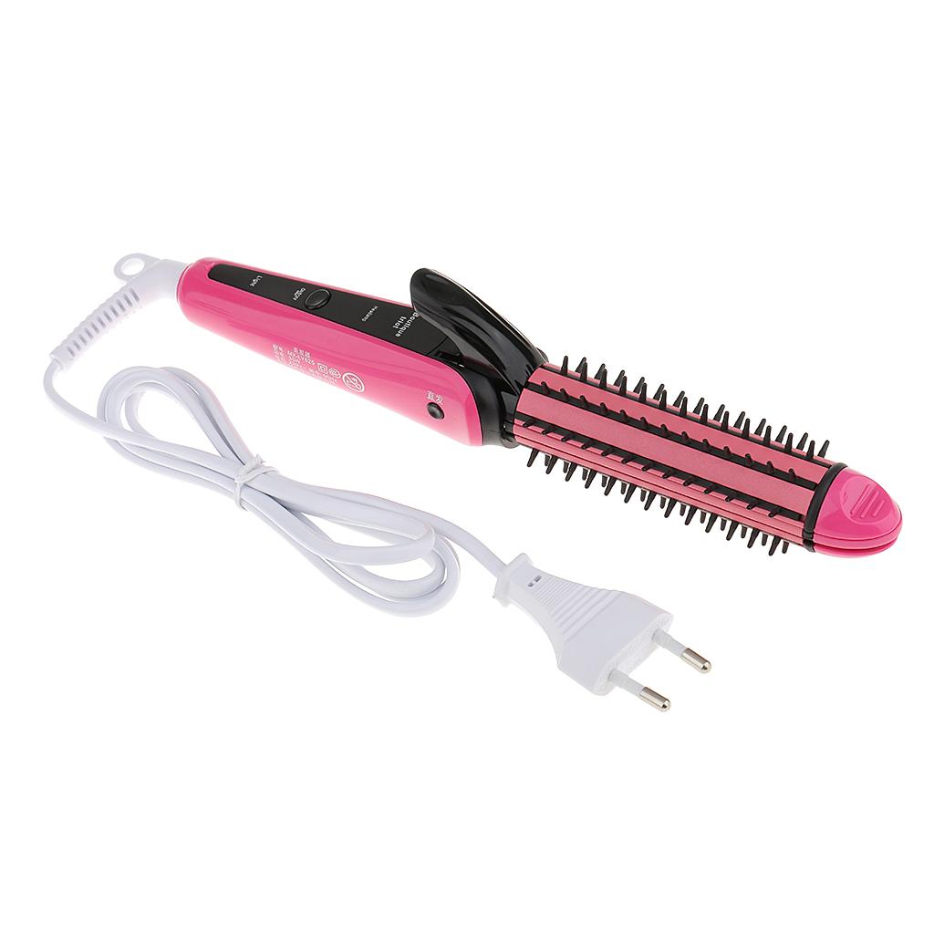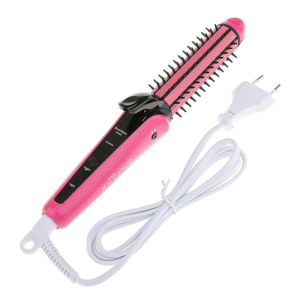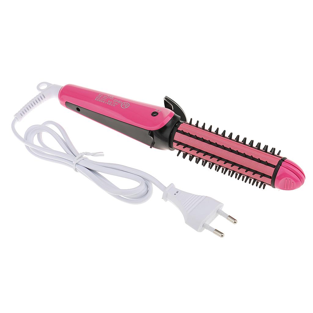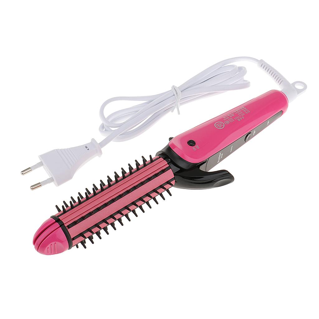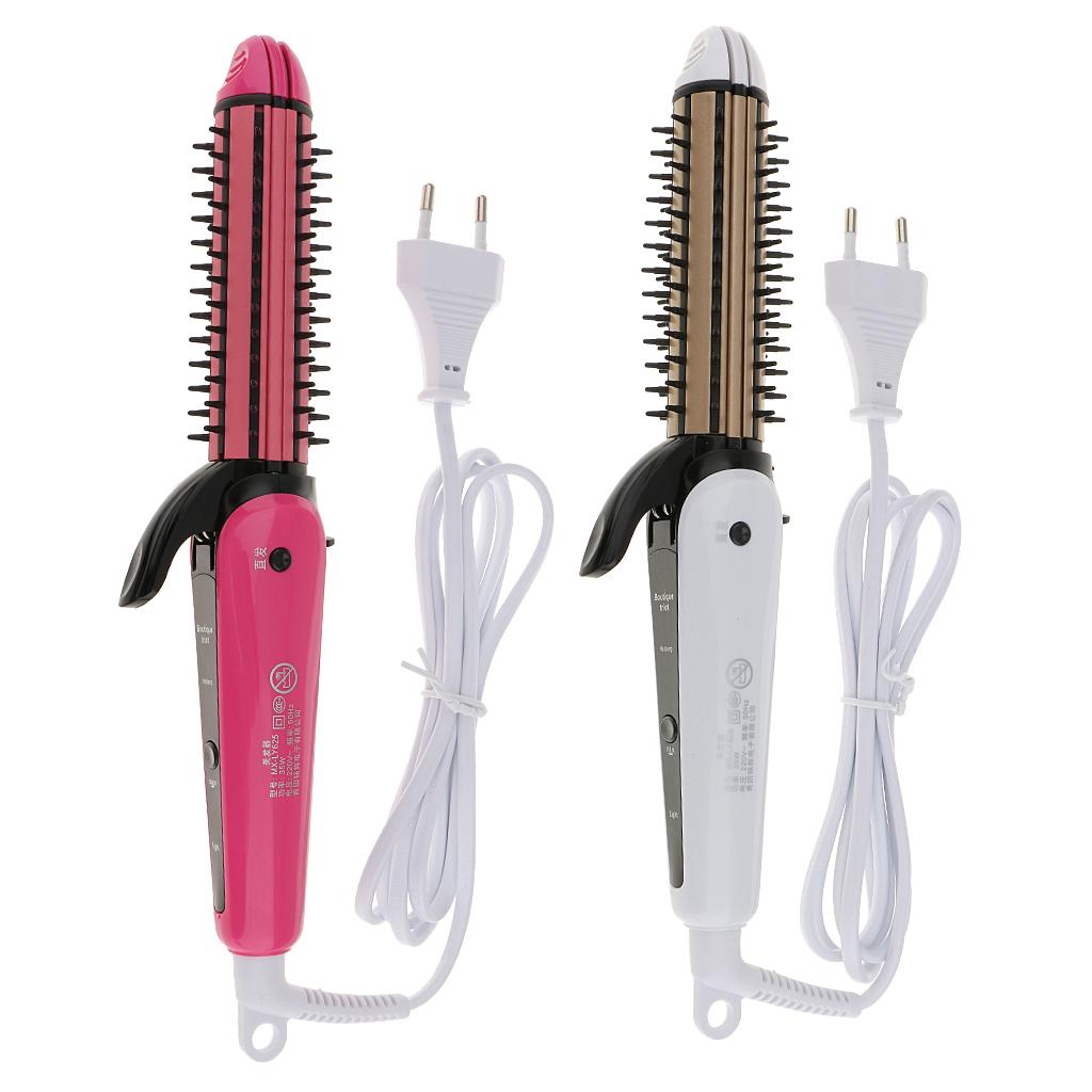 3 in 1 Electric Hair Straightener Curler Corn Wave Styler Iron Brush Rosy EU