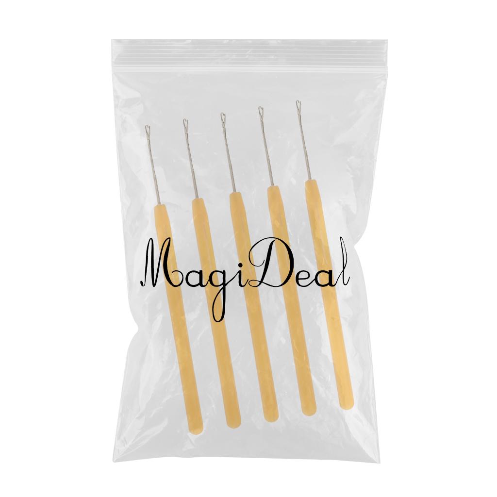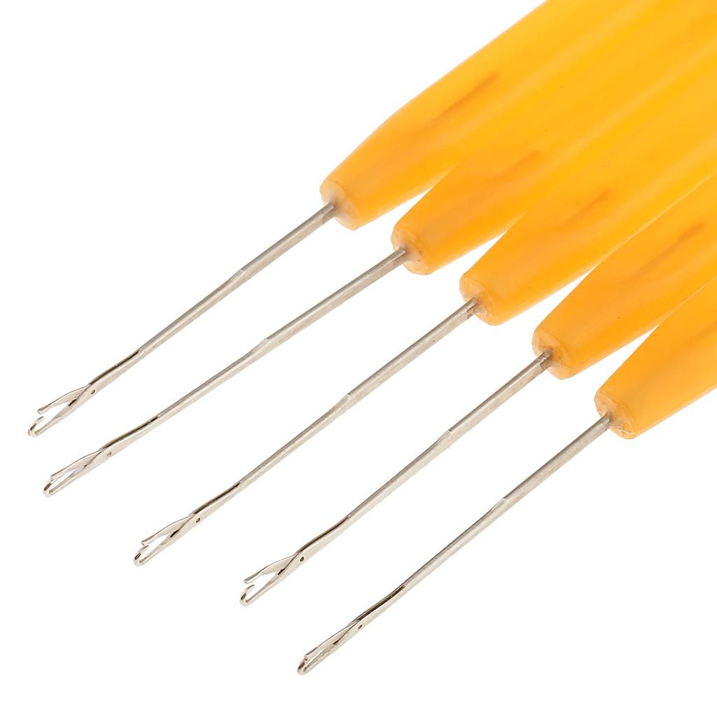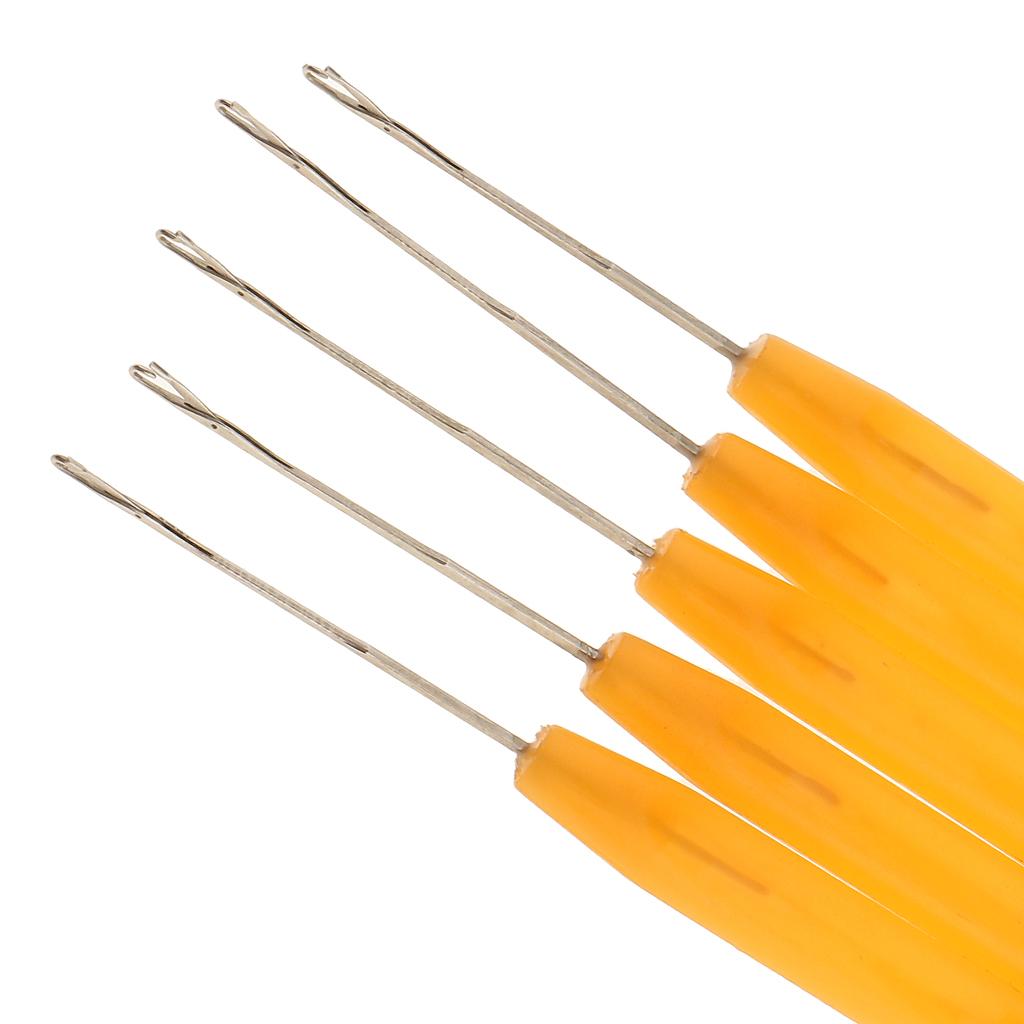 5 Pieces Pulling Hook Needle Tools for Micro Ring Hair Extensions Yellow