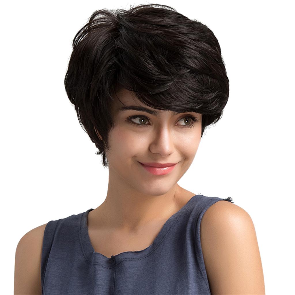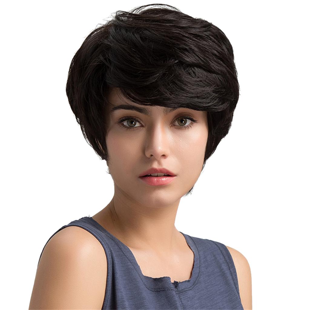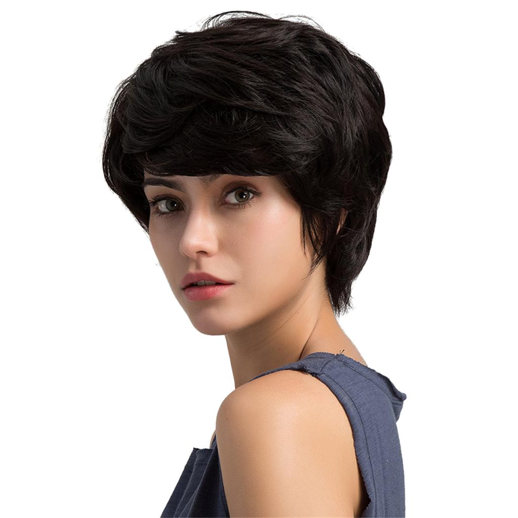 Fancy Women Real Human Hair Wig Short Full Wigs Heat Resistant Cosplay Black