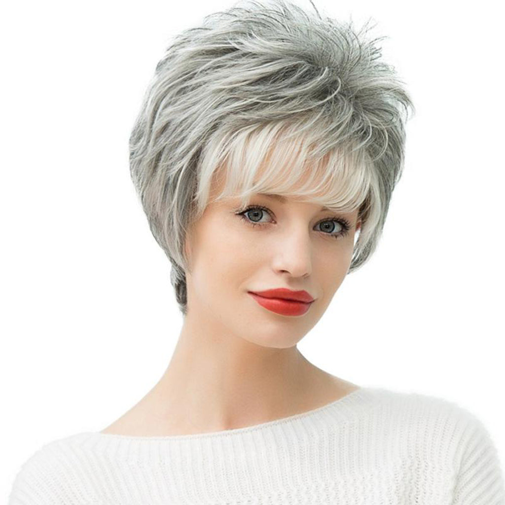 Fashion Women Short Natural Wave Human Hair Wig Full Head Wigs Ombre Gray