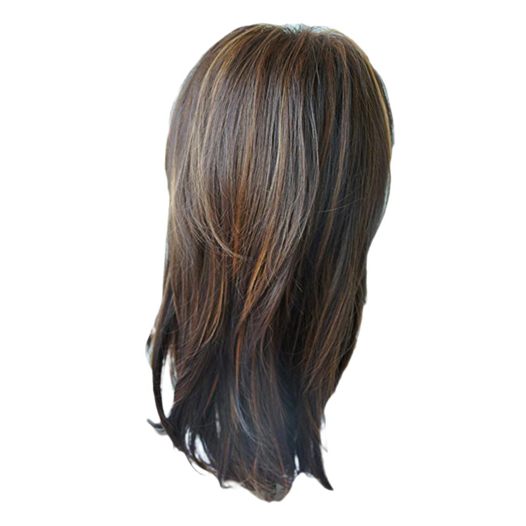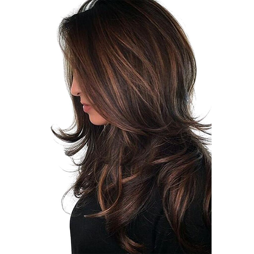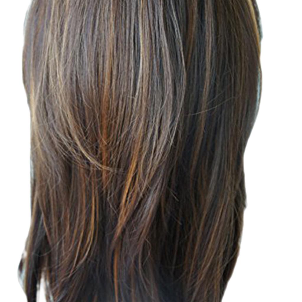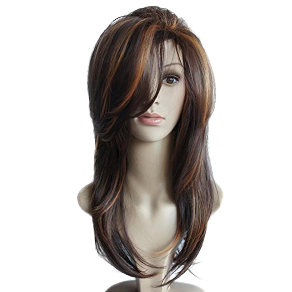 High Quality Women Long Natural Straight Synthetic Hair Wigs With Cap Multi Color Side Bangs Elegant Natural Looking