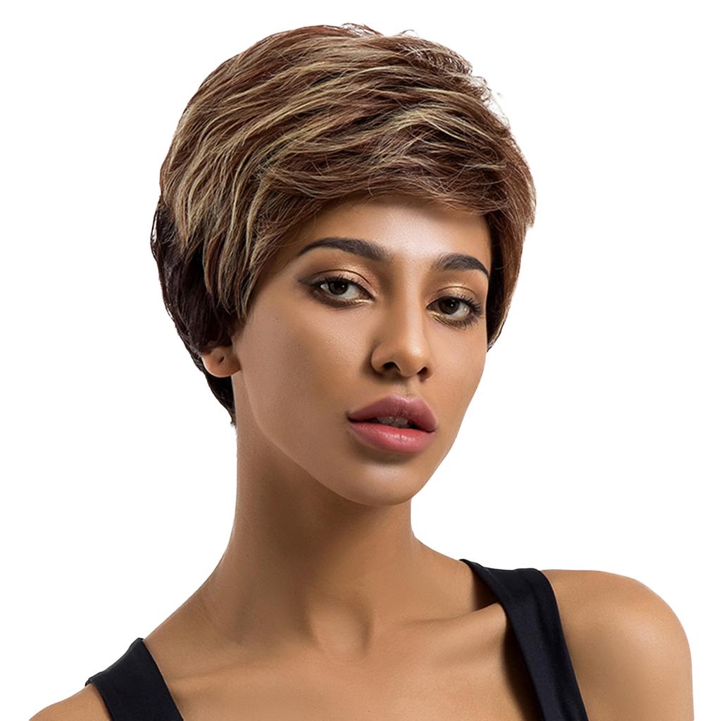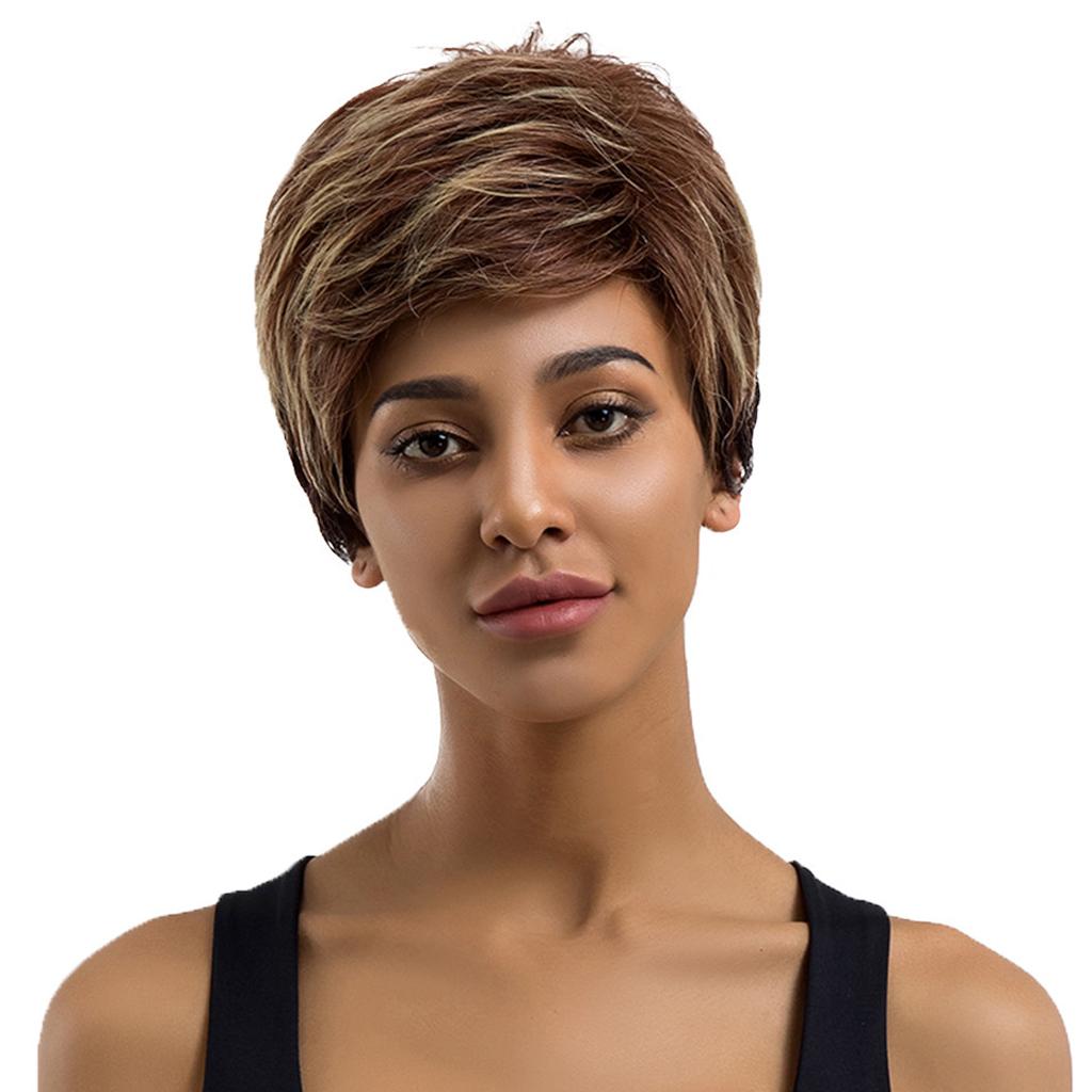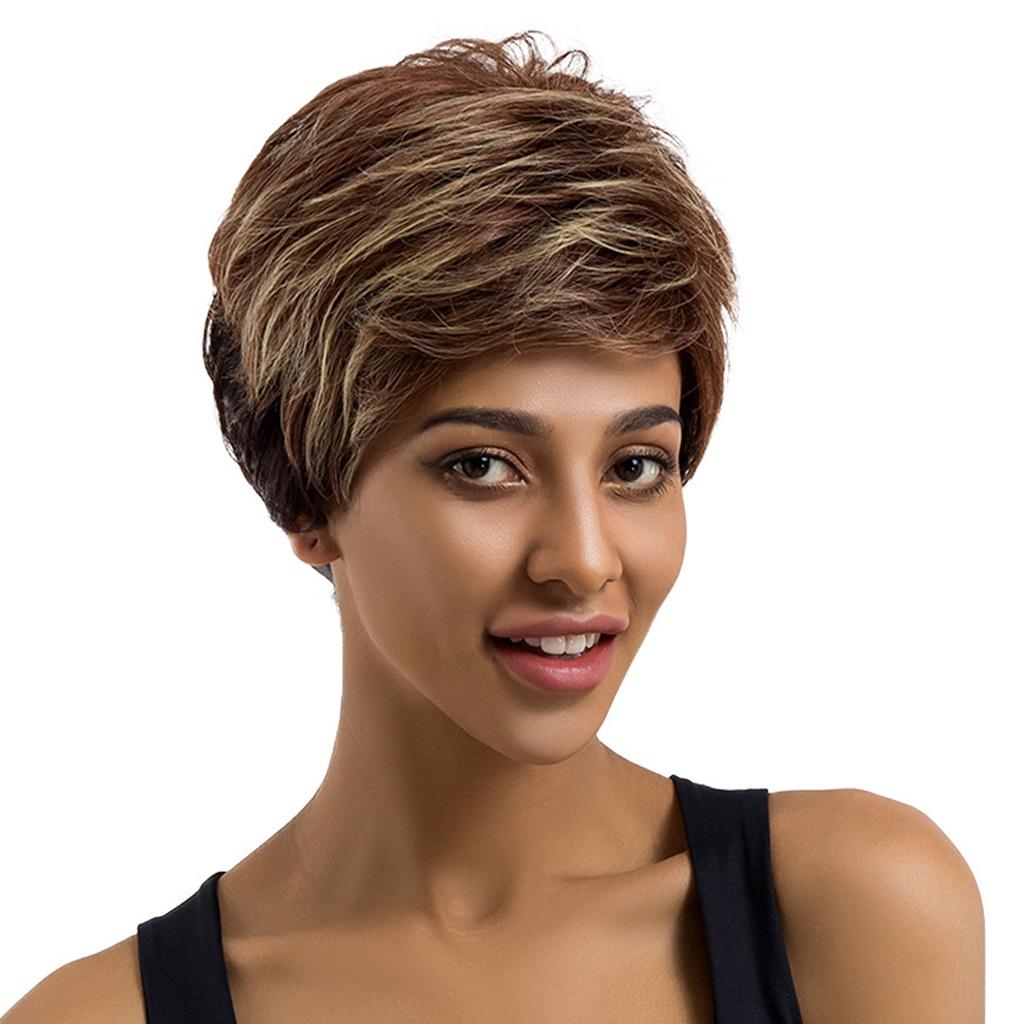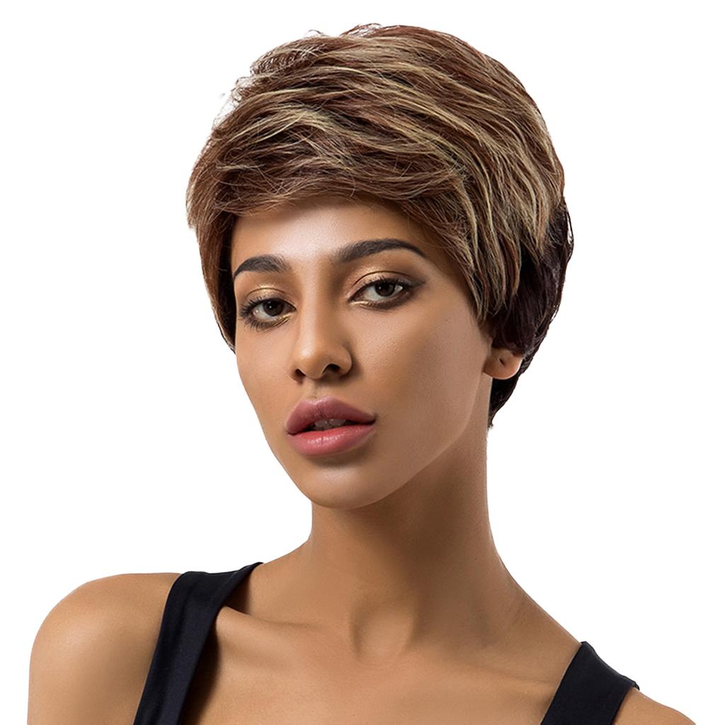 Real human hair wig, short wavy fringe hairstyle with oblique bangs.