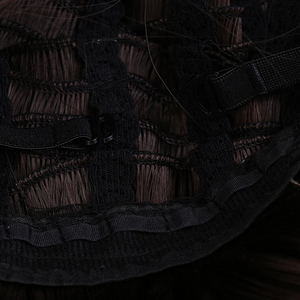 Hair is sewn on an adjustable light-netting cap, which should fit an average size head.