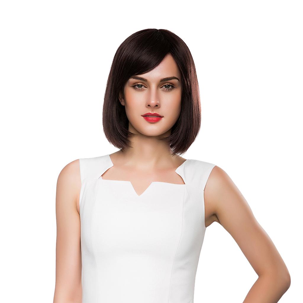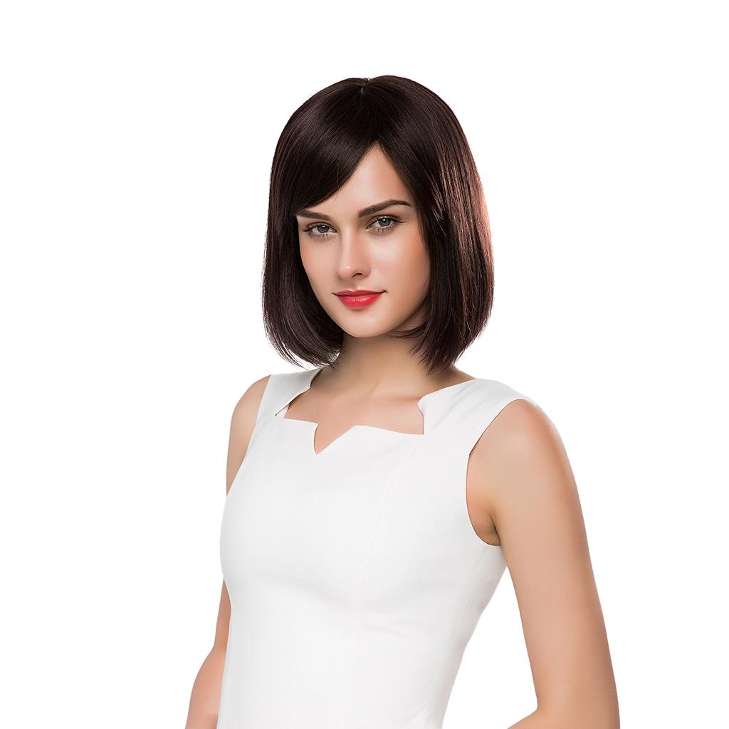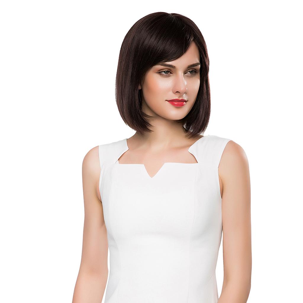 Natural Black Straight Bob 100% Human Hair Wigs With Cap For Women 14 Inch