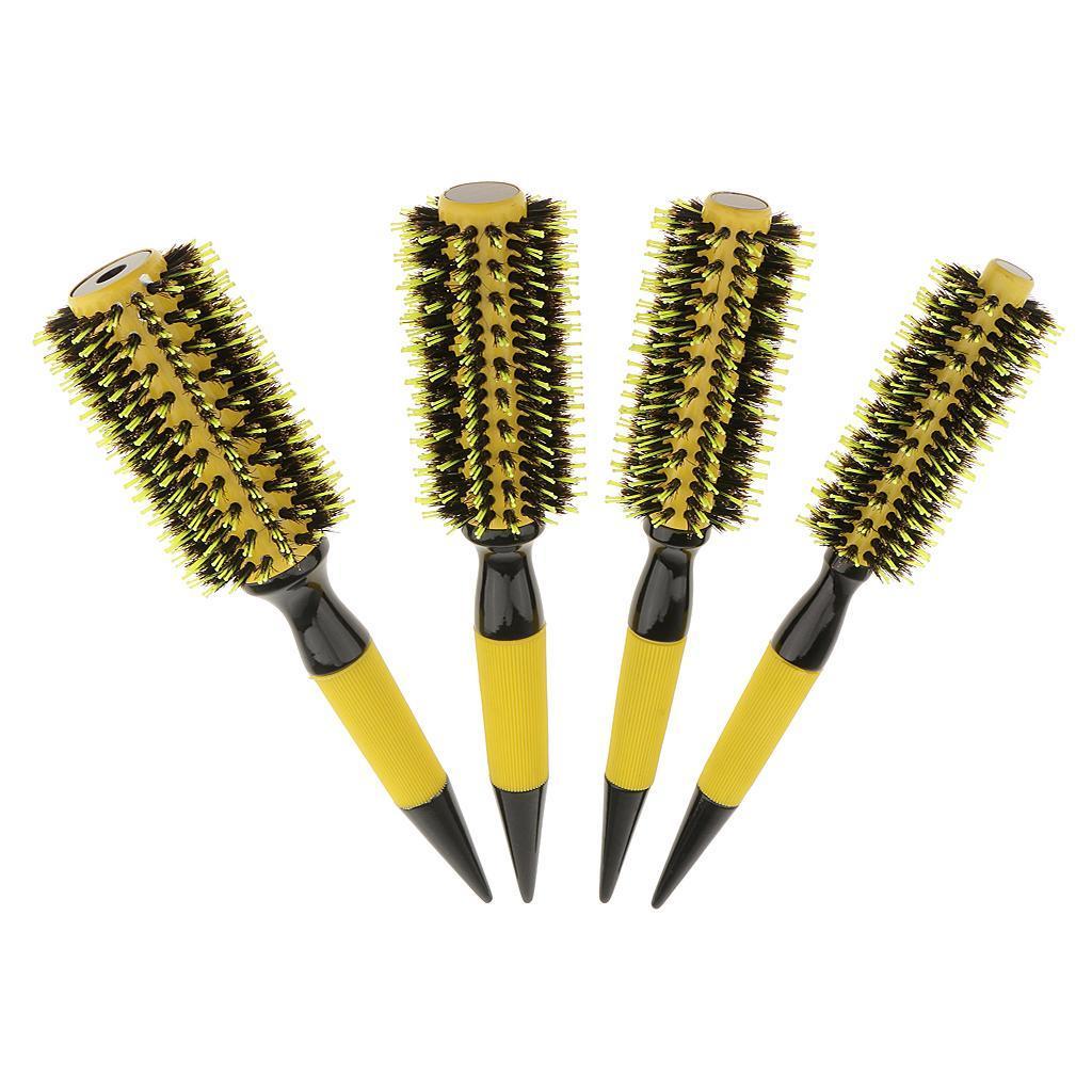 Nylon Bristle Round Hair Roller Brush Natural Wood Handle Hairbrush 4.5cm