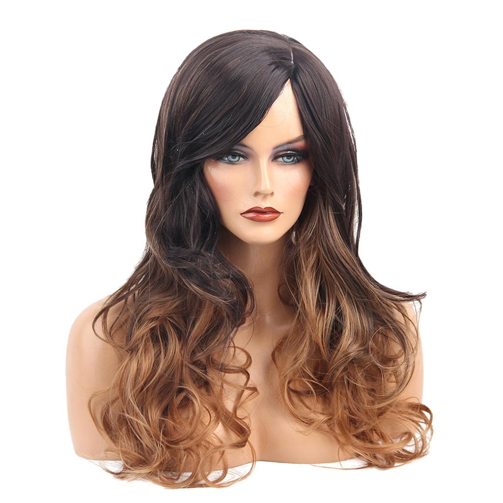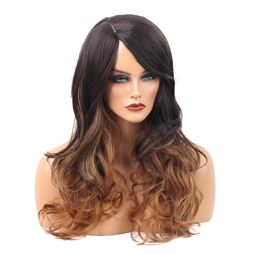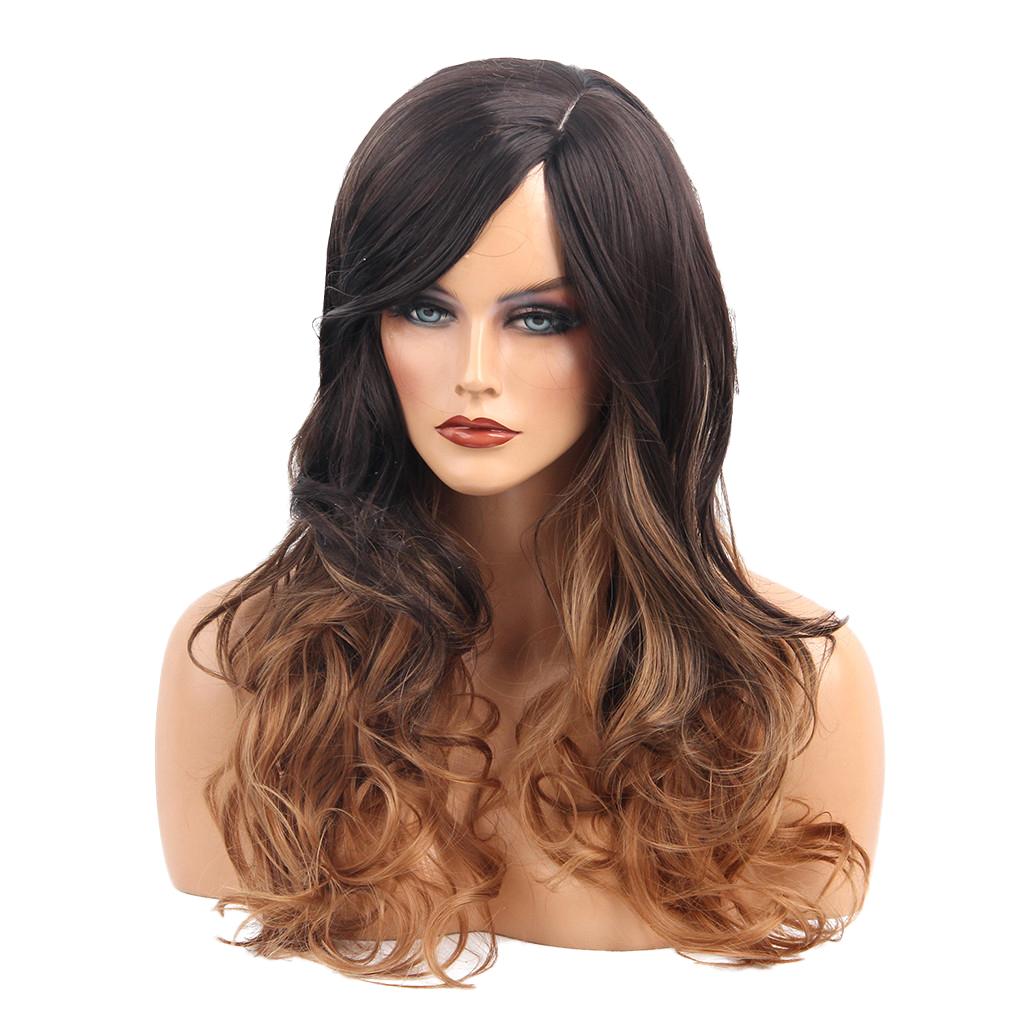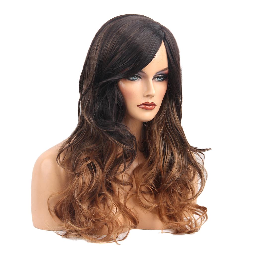 22 Inches, long brown wavy Texture, Ombre Tones, Dark roots.