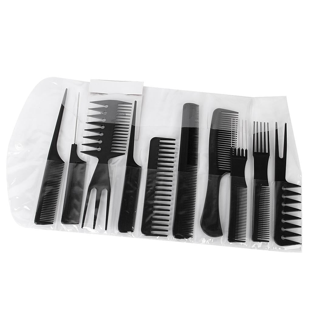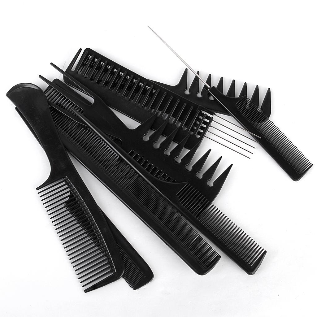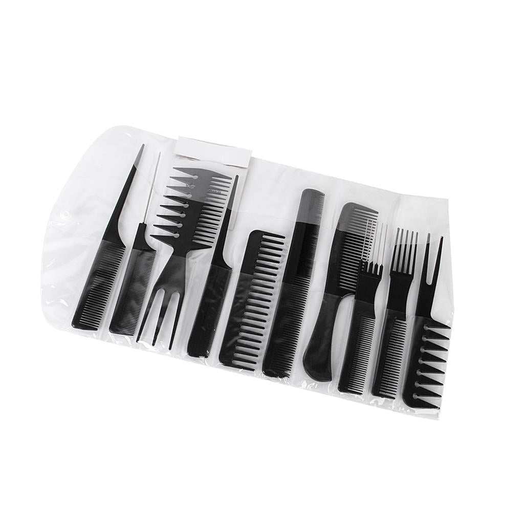 SET OF 10PCS Multipurpose Professional Lightweight Stylish Comb Brush FOR Teasing Lifting Curling Beauty supplies Black