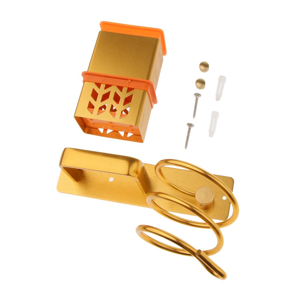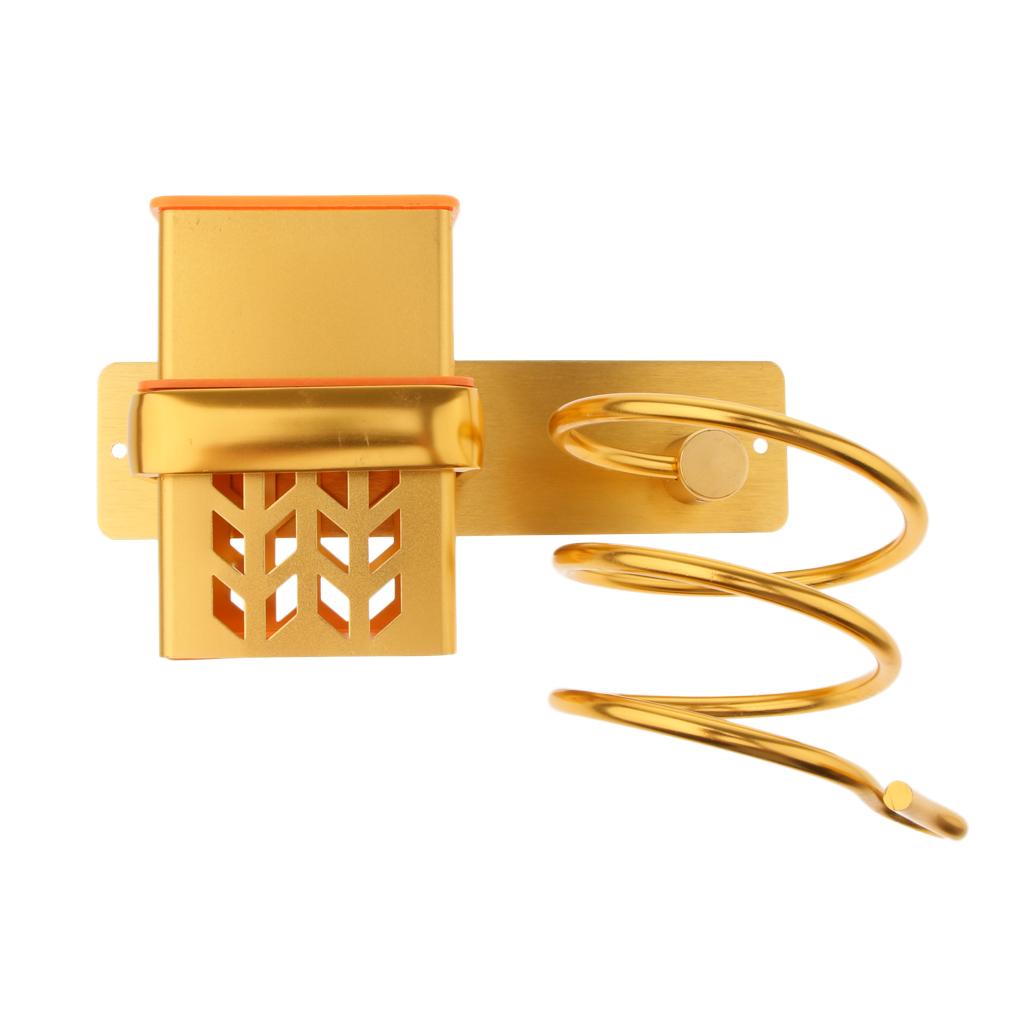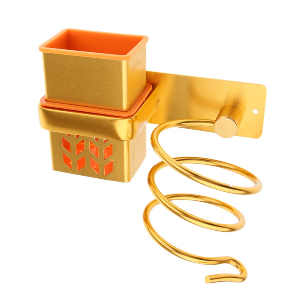 Space Aluminium Hair Blow Dryer Styling Stand Holder Wall Mounted Rack With Comb Cup Bathroom Storage Shelf- Gold