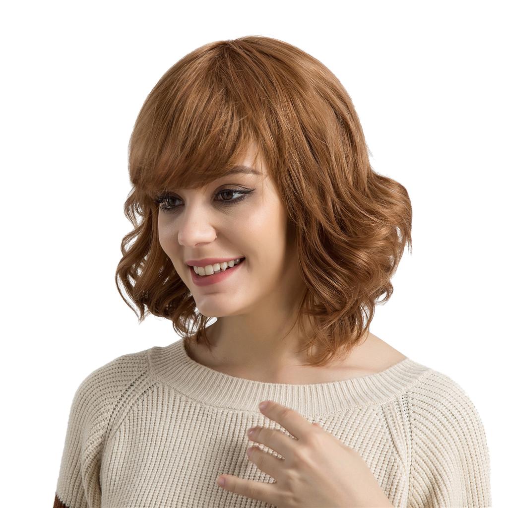 Women Short Curly Layered Wavy Wig Light Brown Real Human Hair Wigs Free Wig Cap for Daily Wear /Party Costume Cosplay