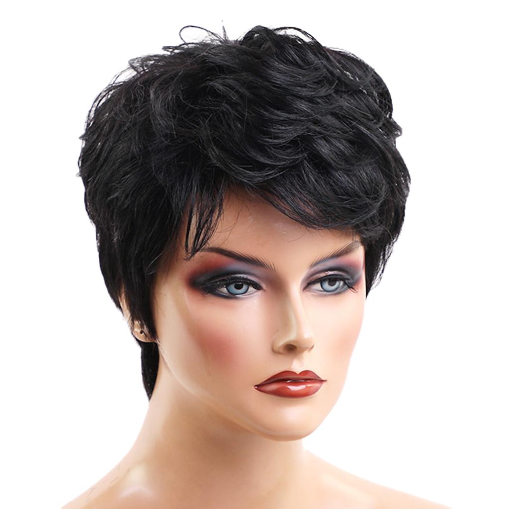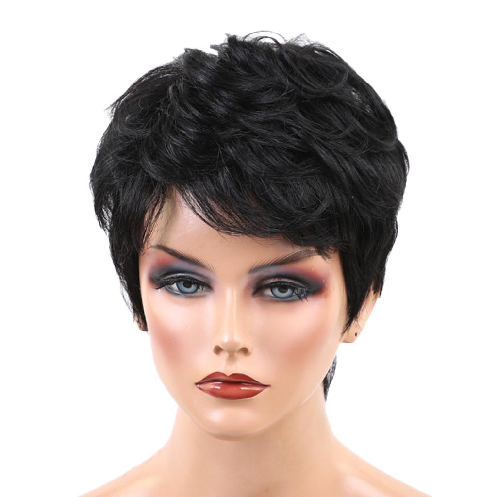 Women Short Hair Wig Wavy Layered Full Wigs Oblique Bangs Fringe Human Hair Heat Safe & Breathable.