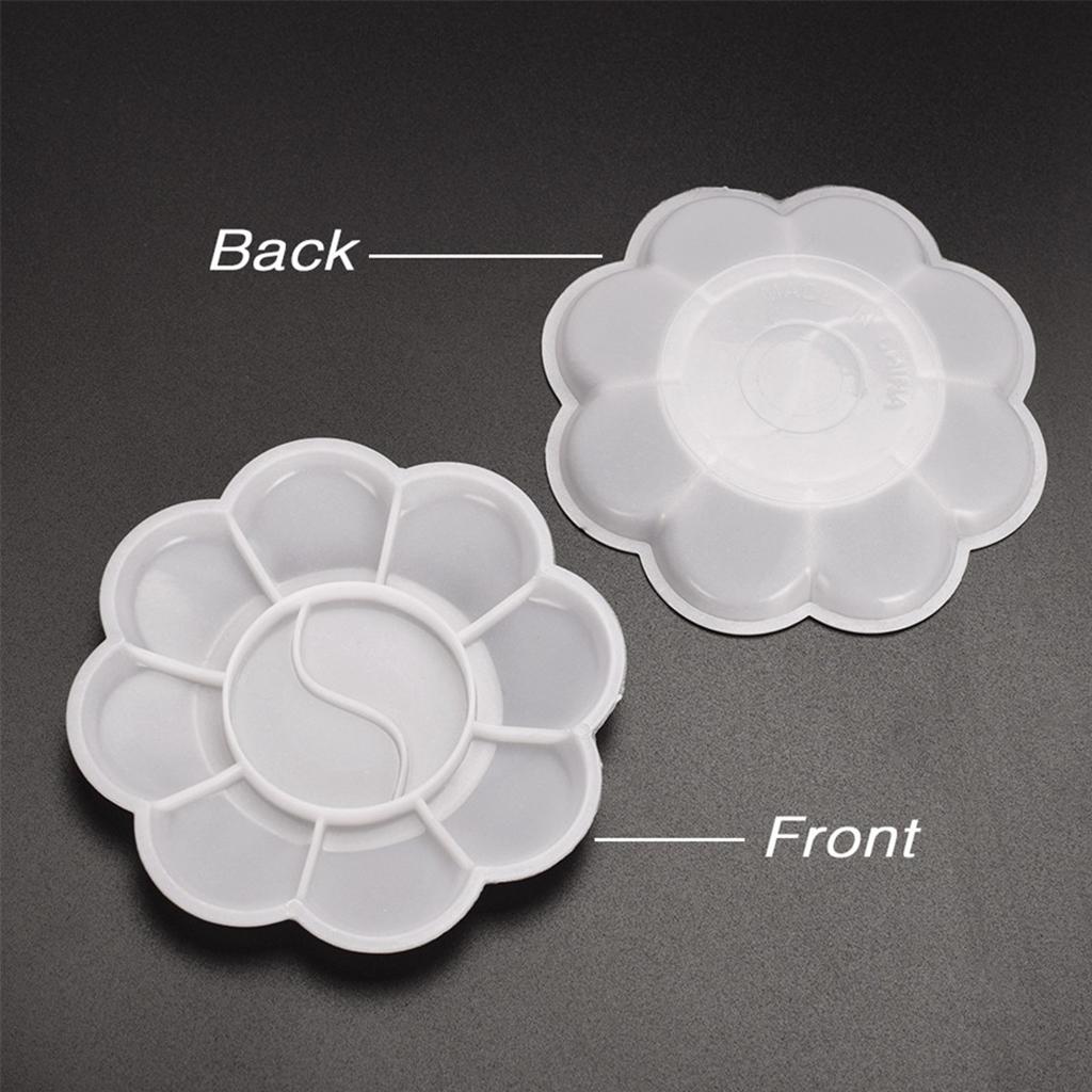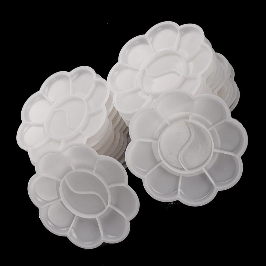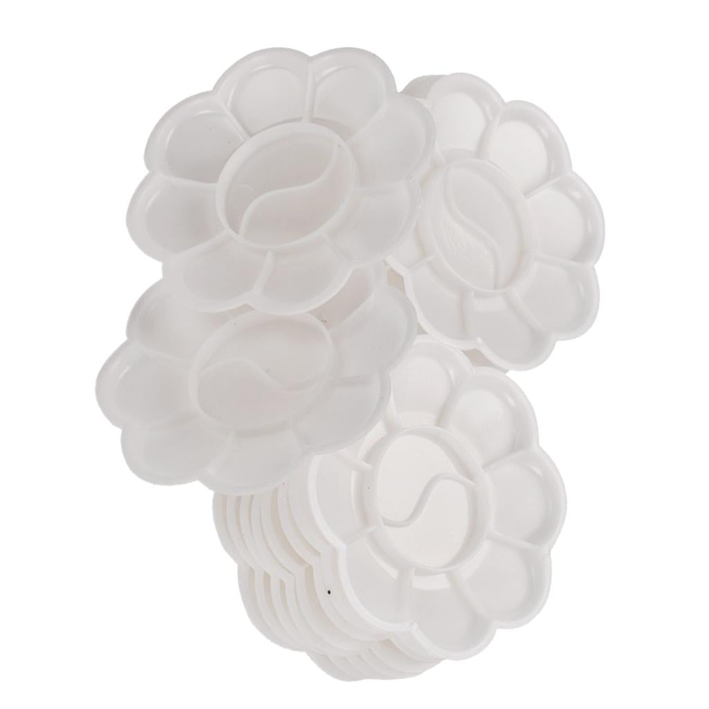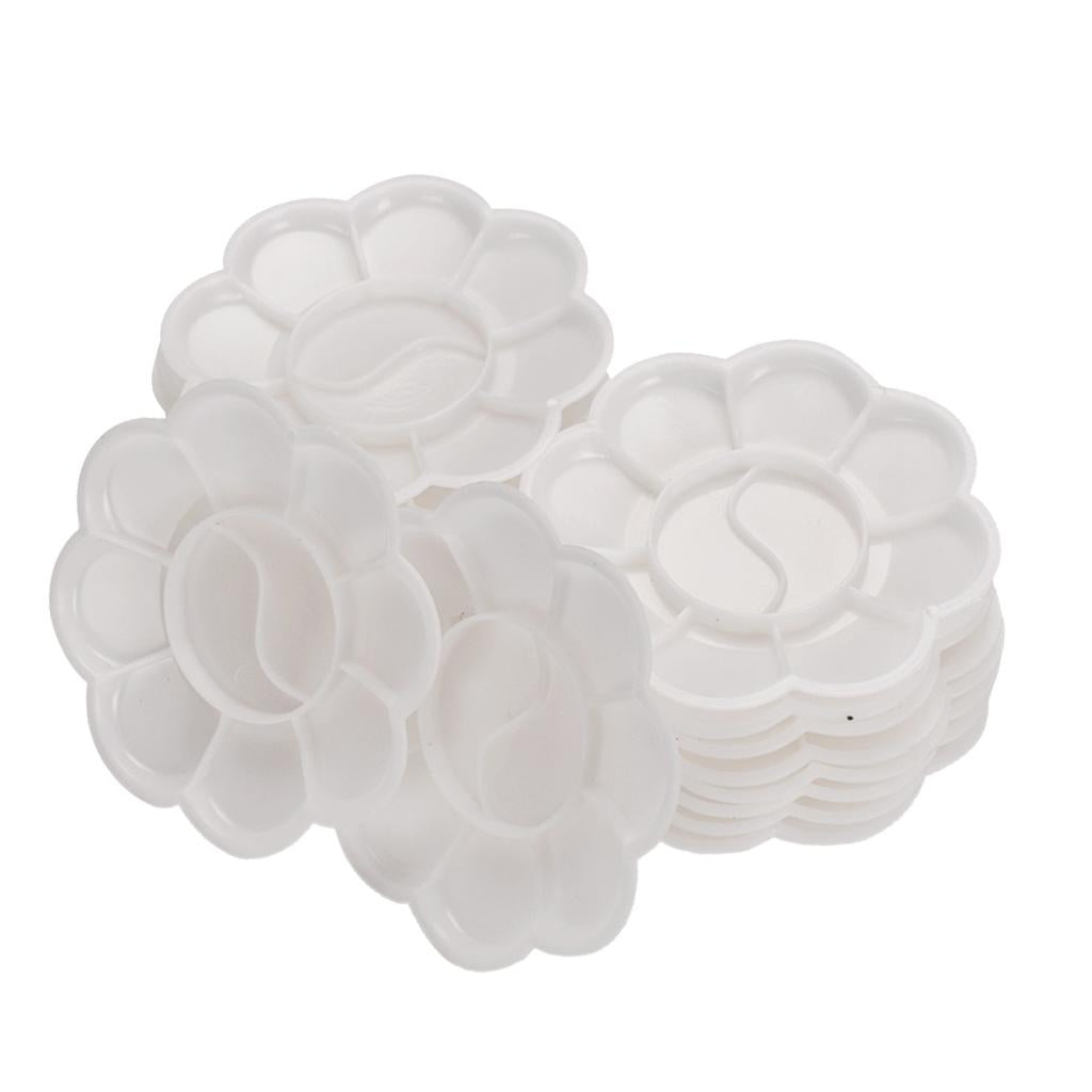 Unique Design The flower shape round plastic palettes with 10 wells and 2 central reservoir,Ideal for blending colors and prevents cross contamination