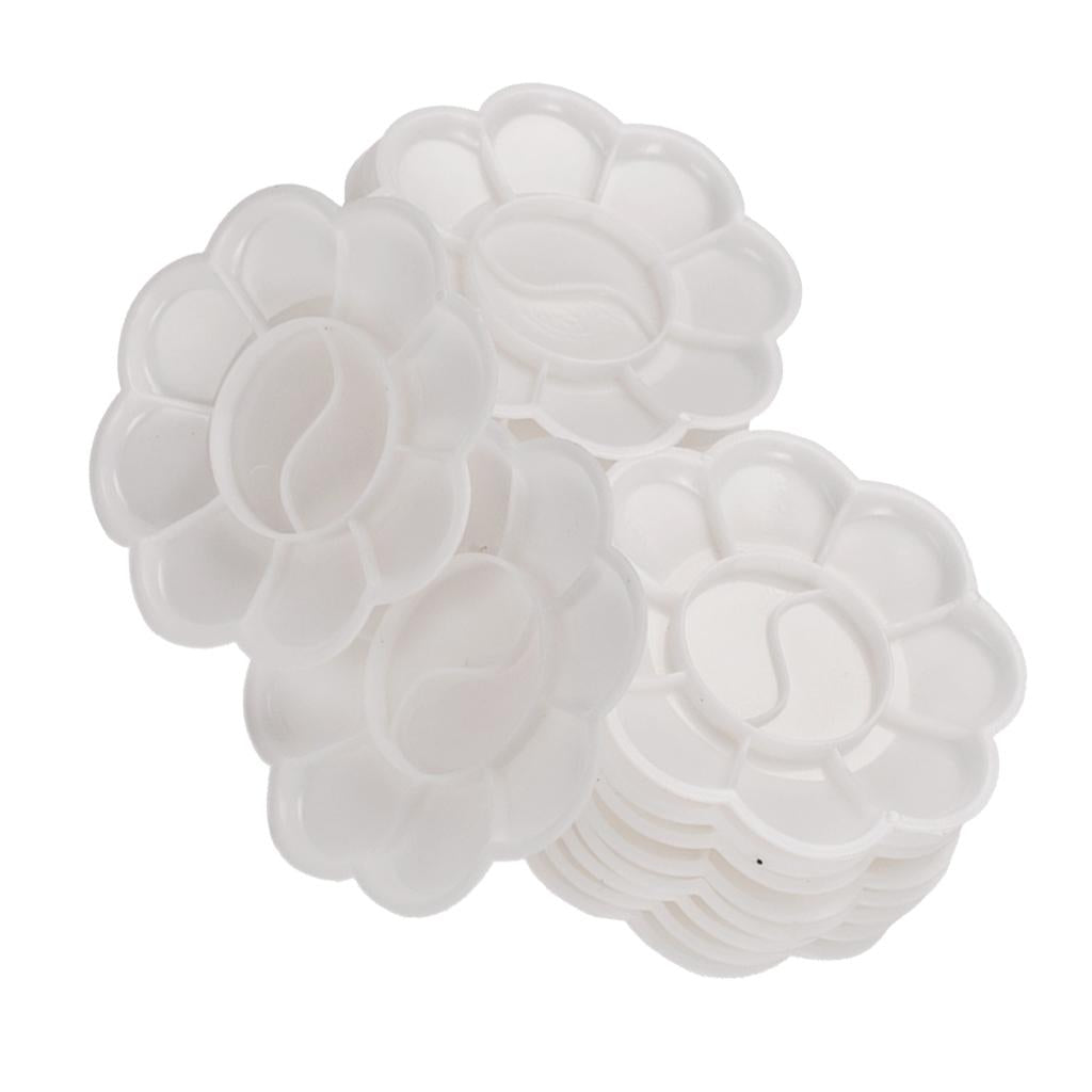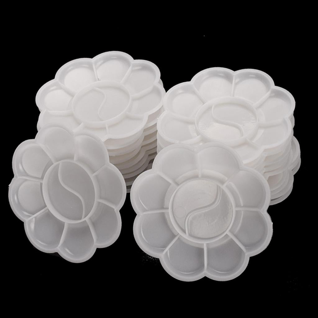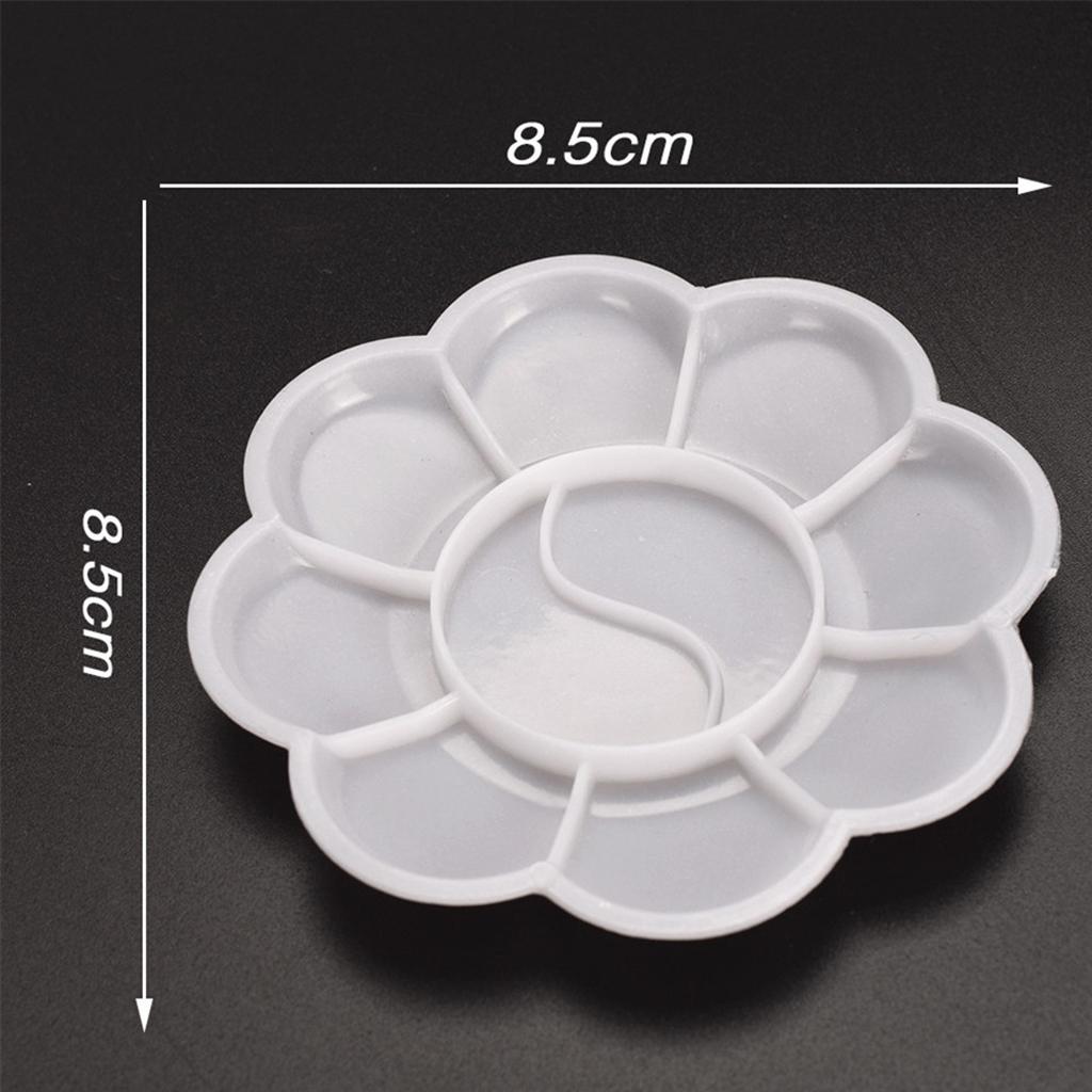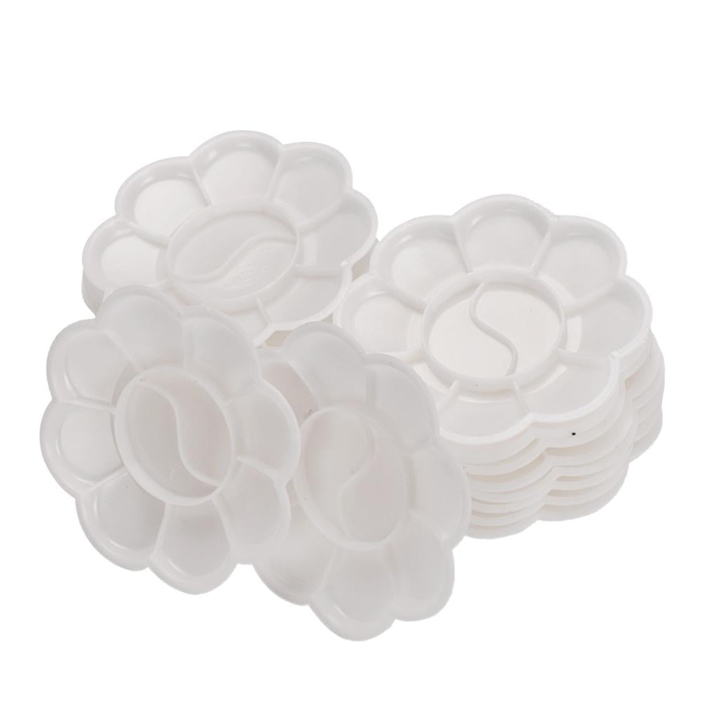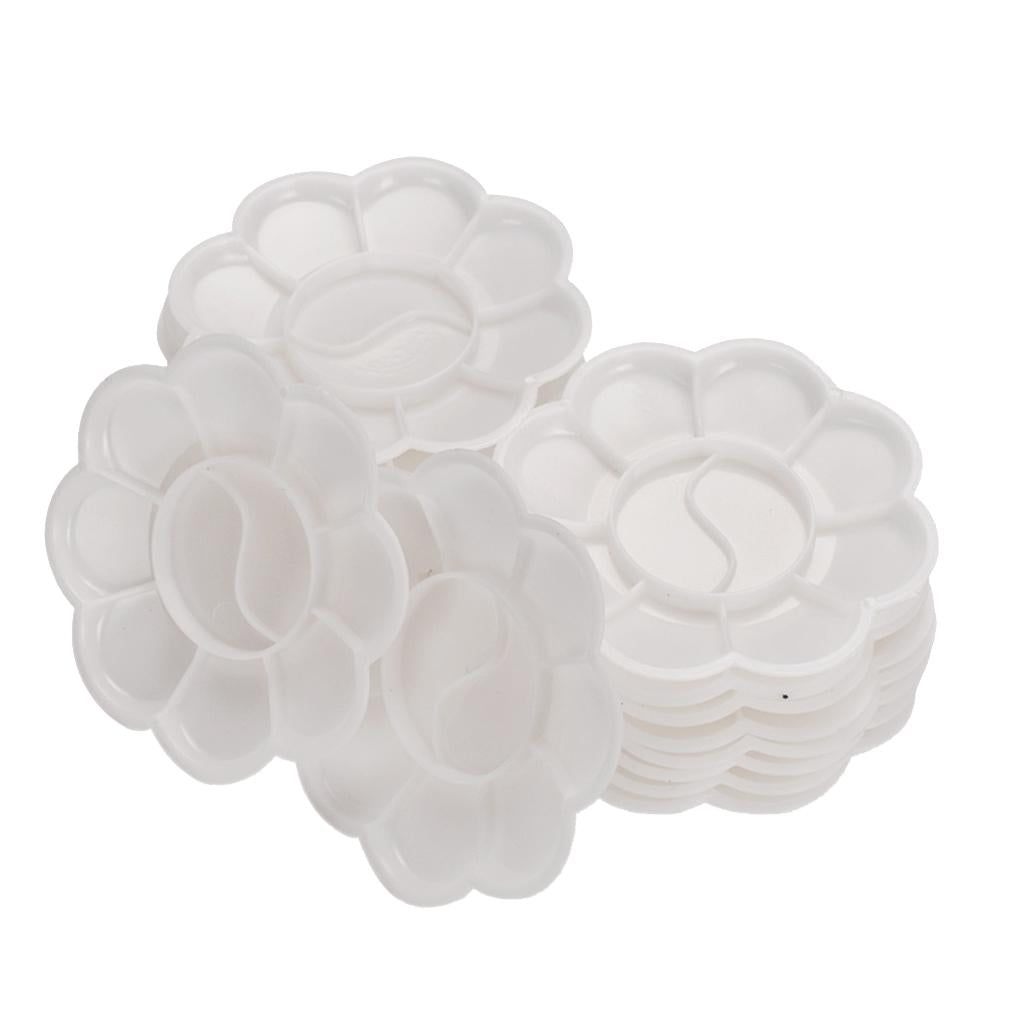 Unique Design The flower shape round plastic palettes with 10 wells and 2 central reservoir,Ideal for blending colors and prevents cross contamination