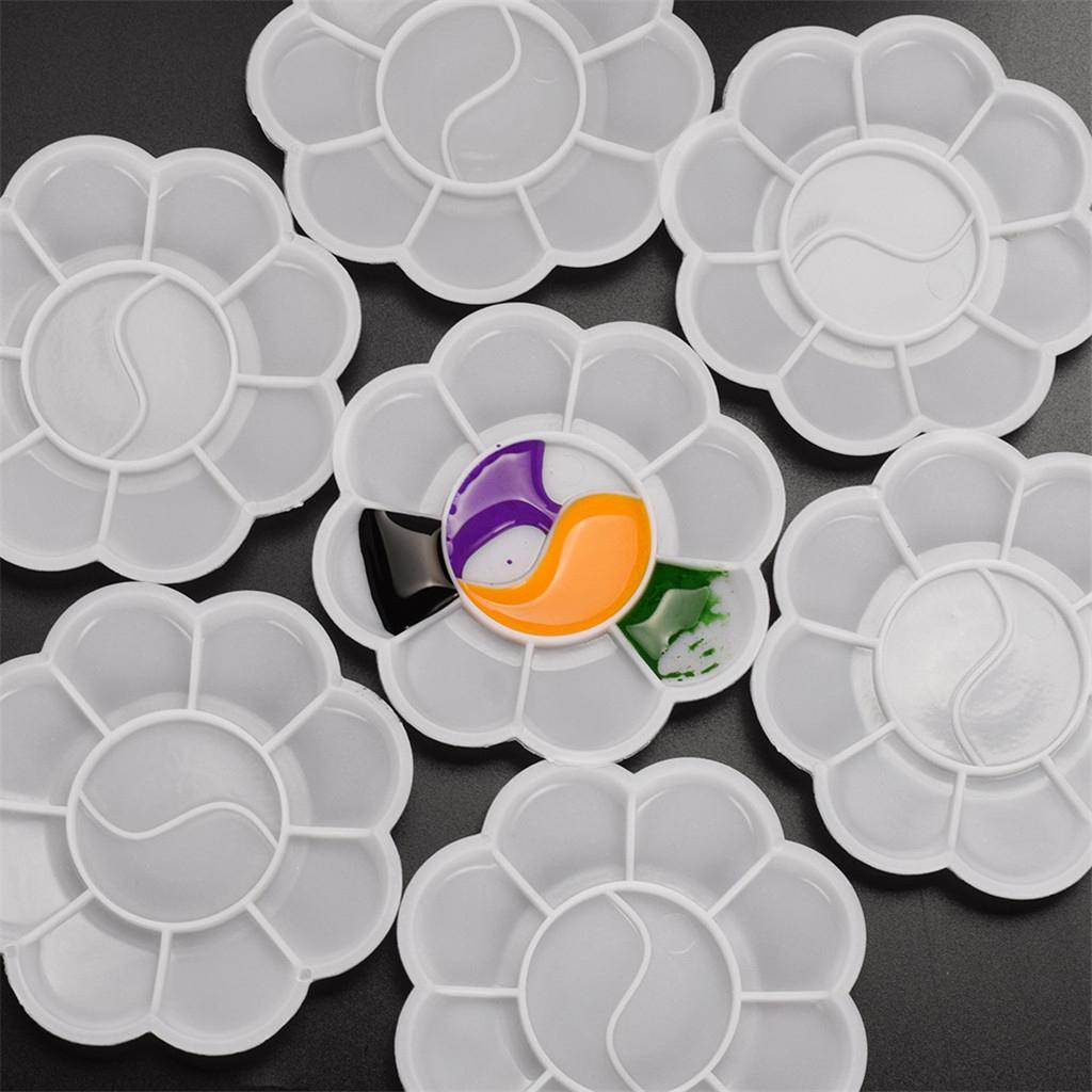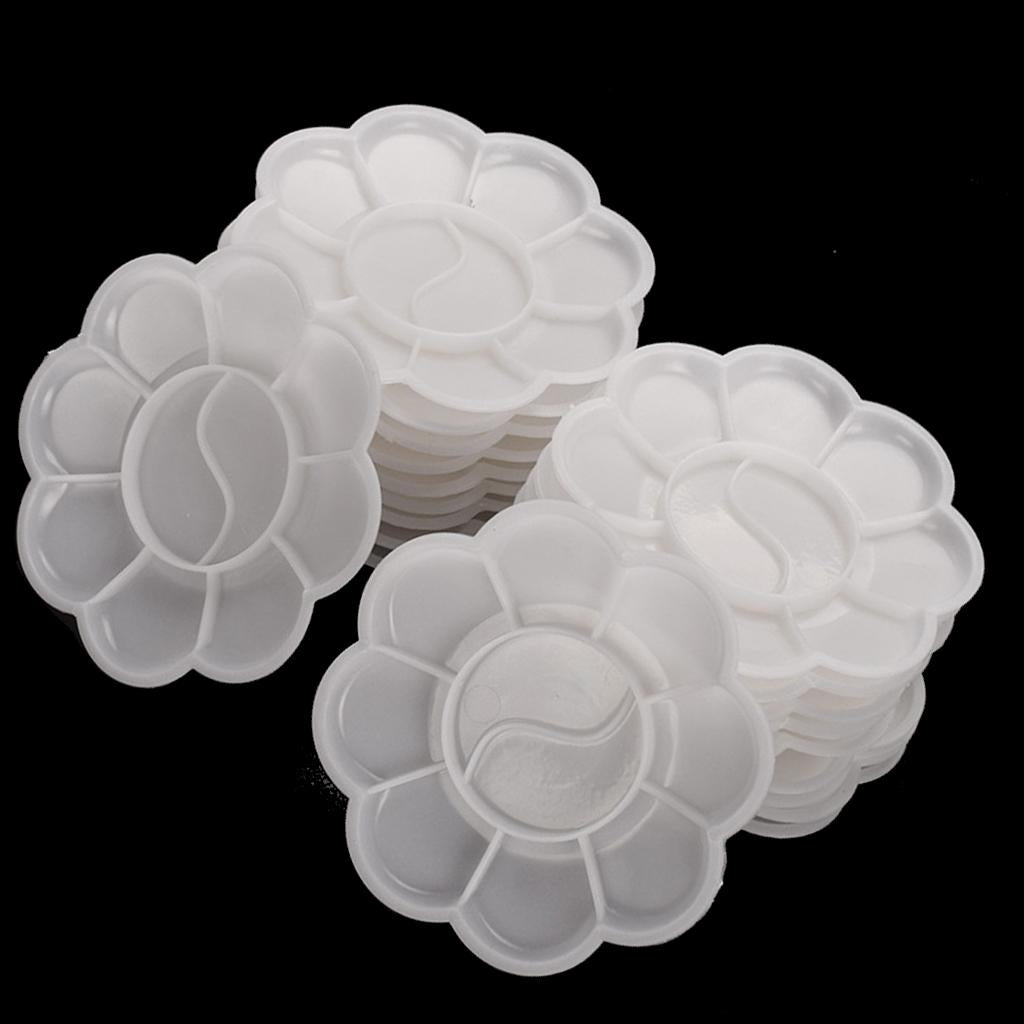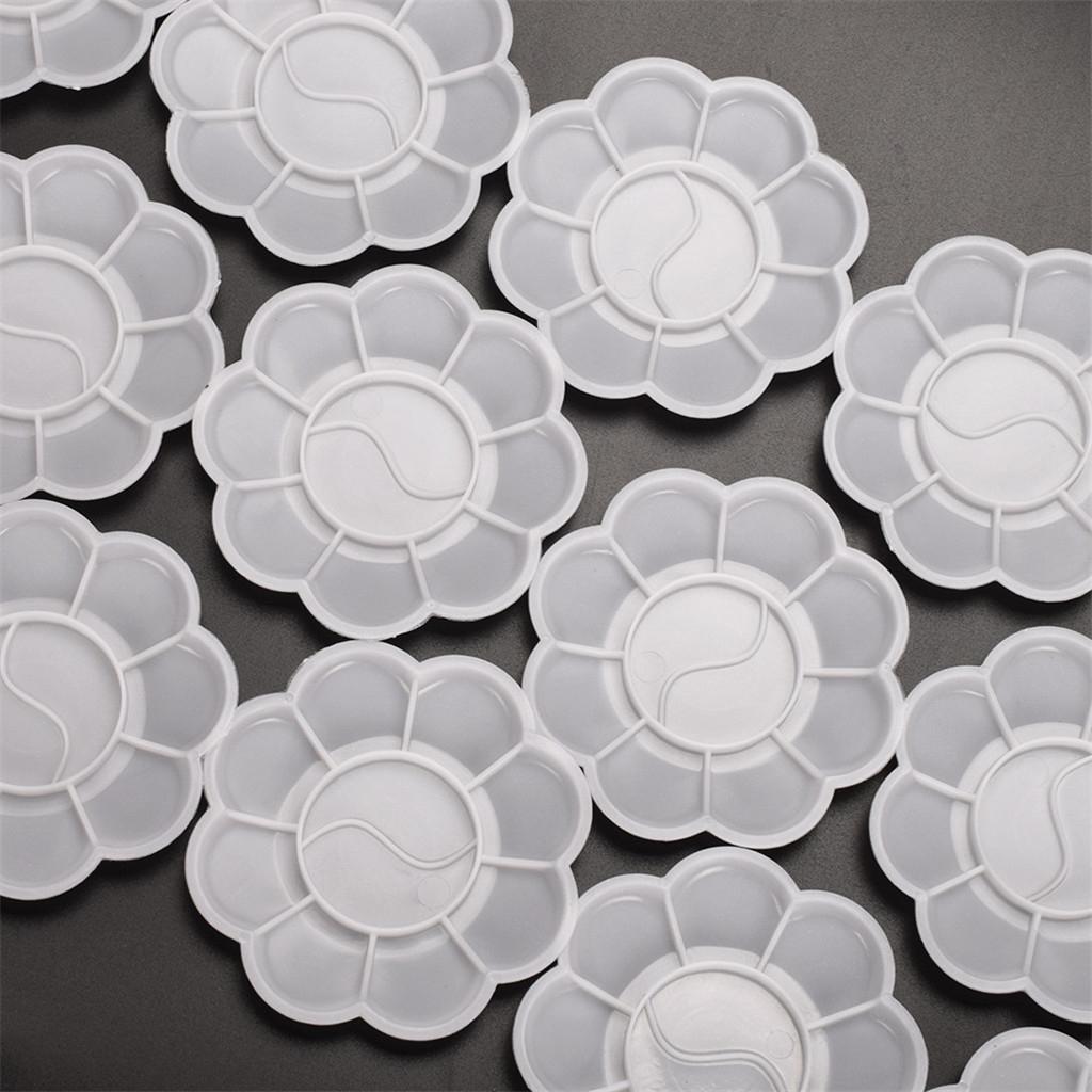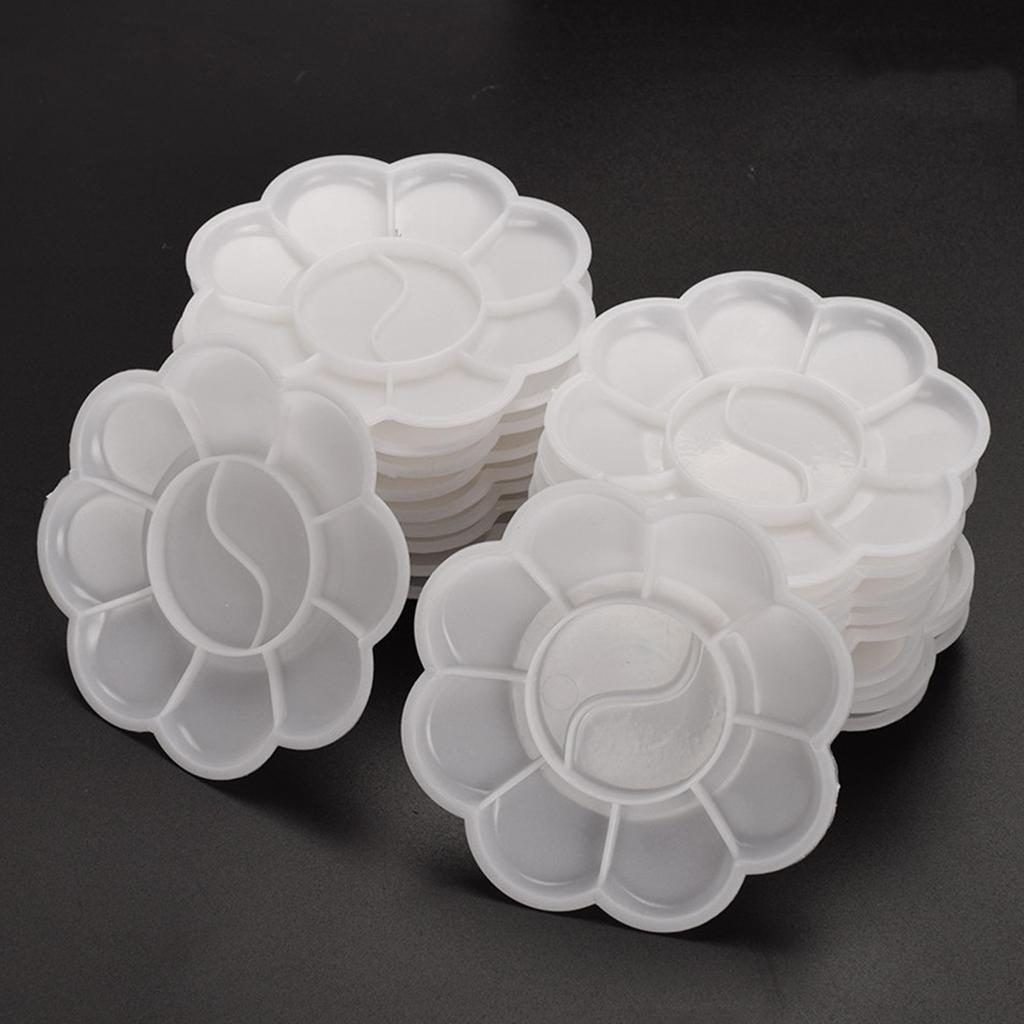 Unique Design The flower shape round plastic palettes with 10 wells and 2 central reservoir,Ideal for blending colors and prevents cross contamination