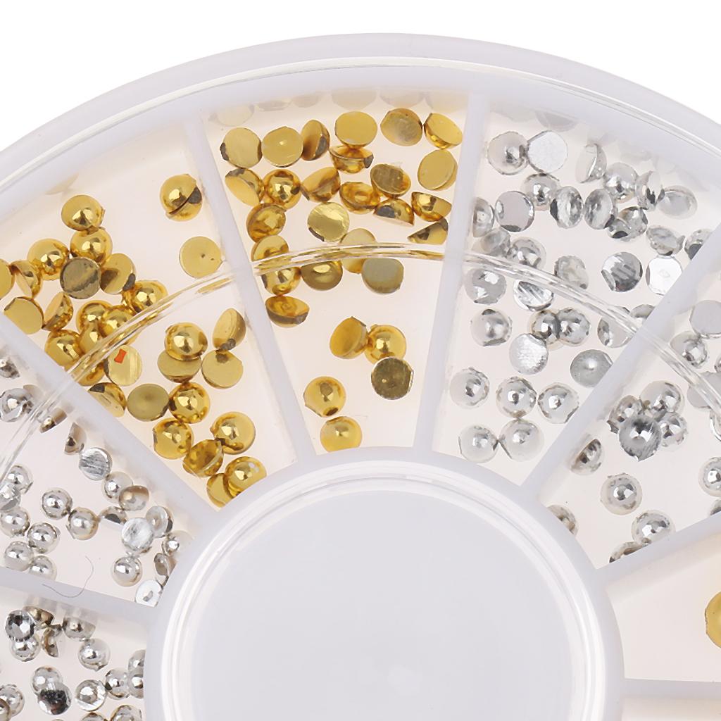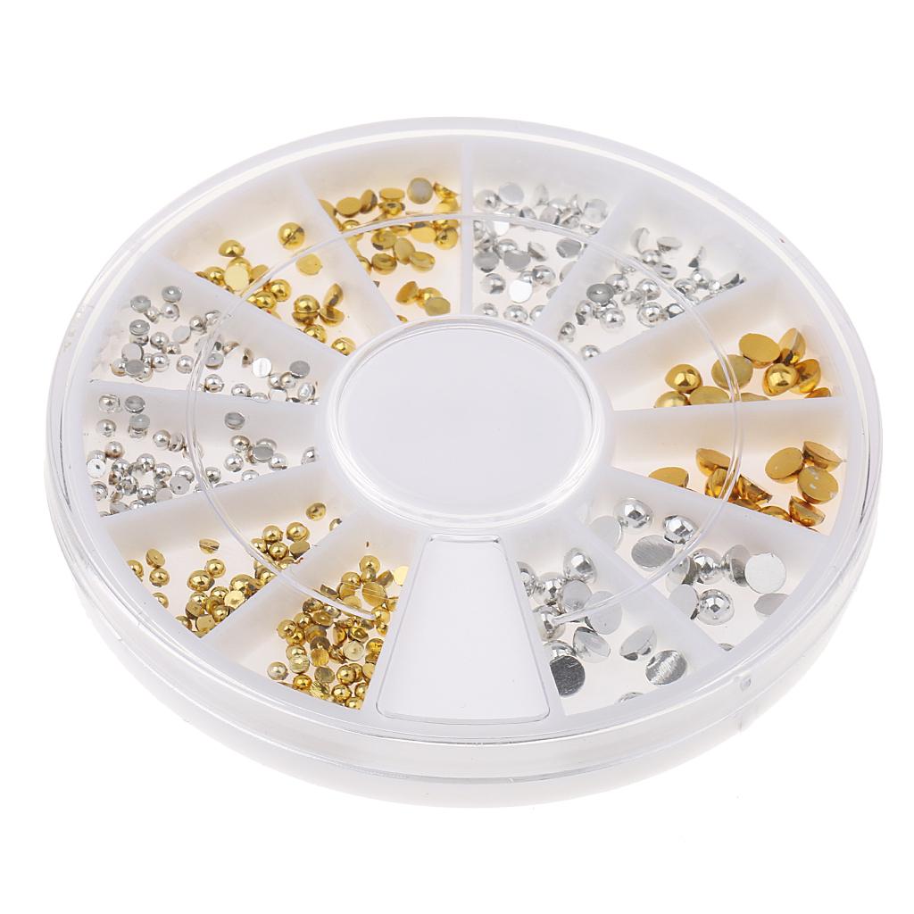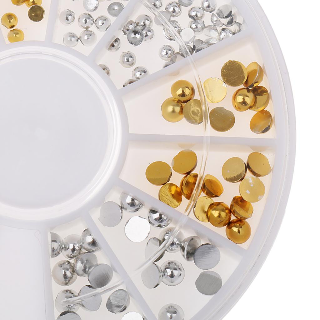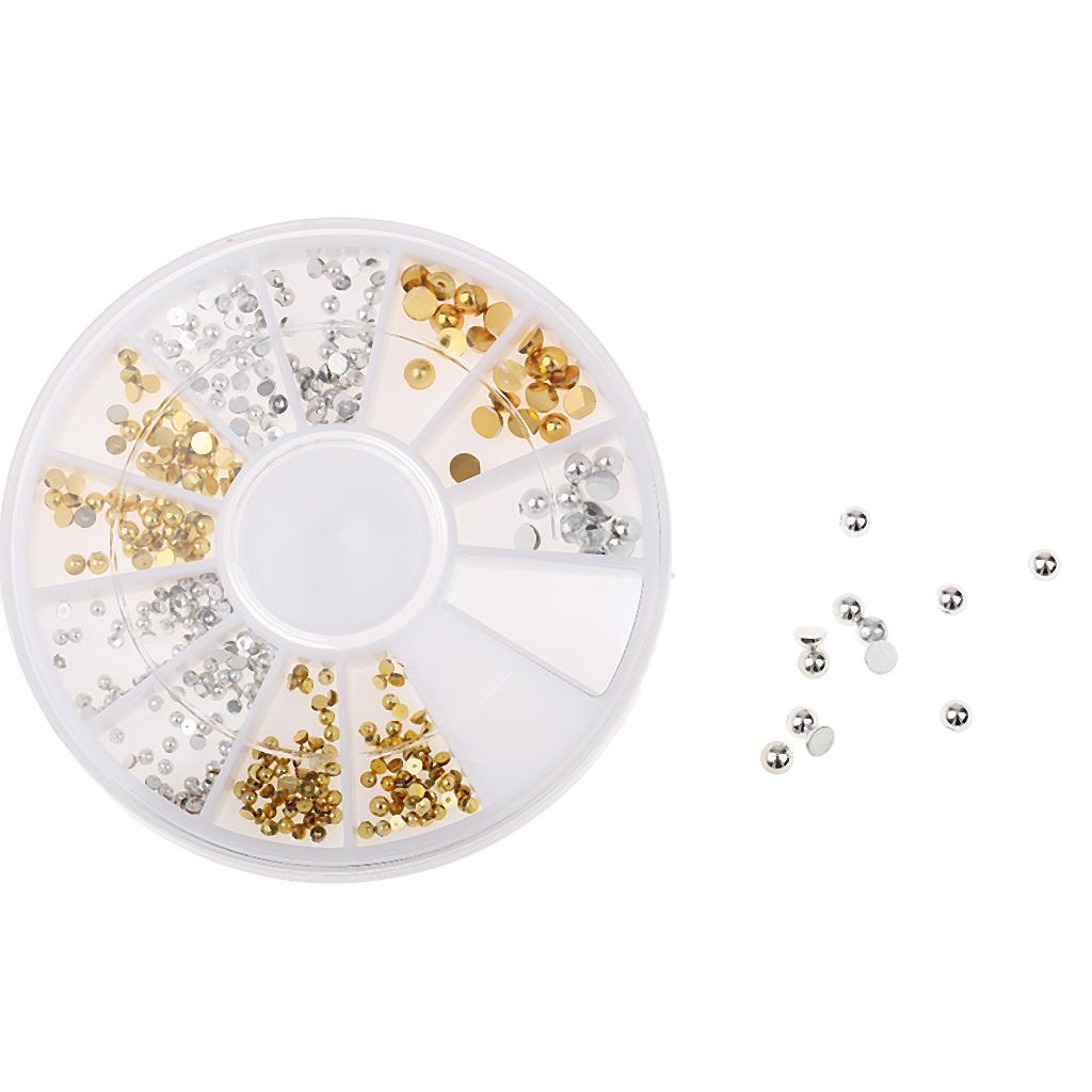 Metal 3D Nail Art Rhinestone Gold Silver Half Pearl Tip Decoration Manicure Accessories + Wheel