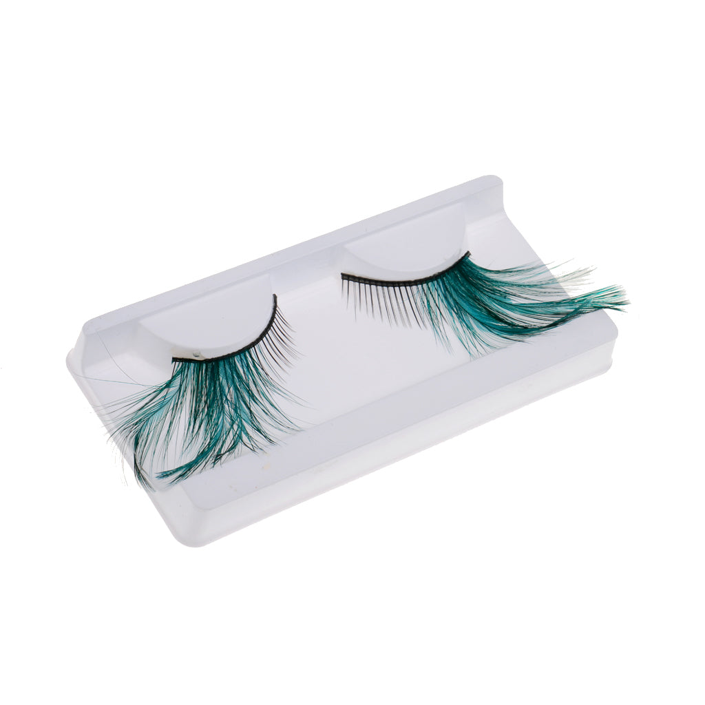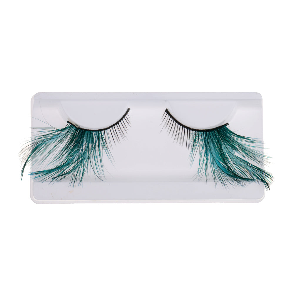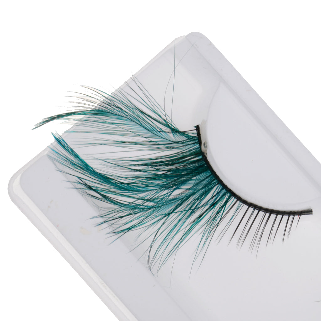 Pair Of False Feather Exaggeration Cosmetic Eyelashes Extensions Makeup Fancy Dress Halloween Cosmetic Tools 5-30MM Green