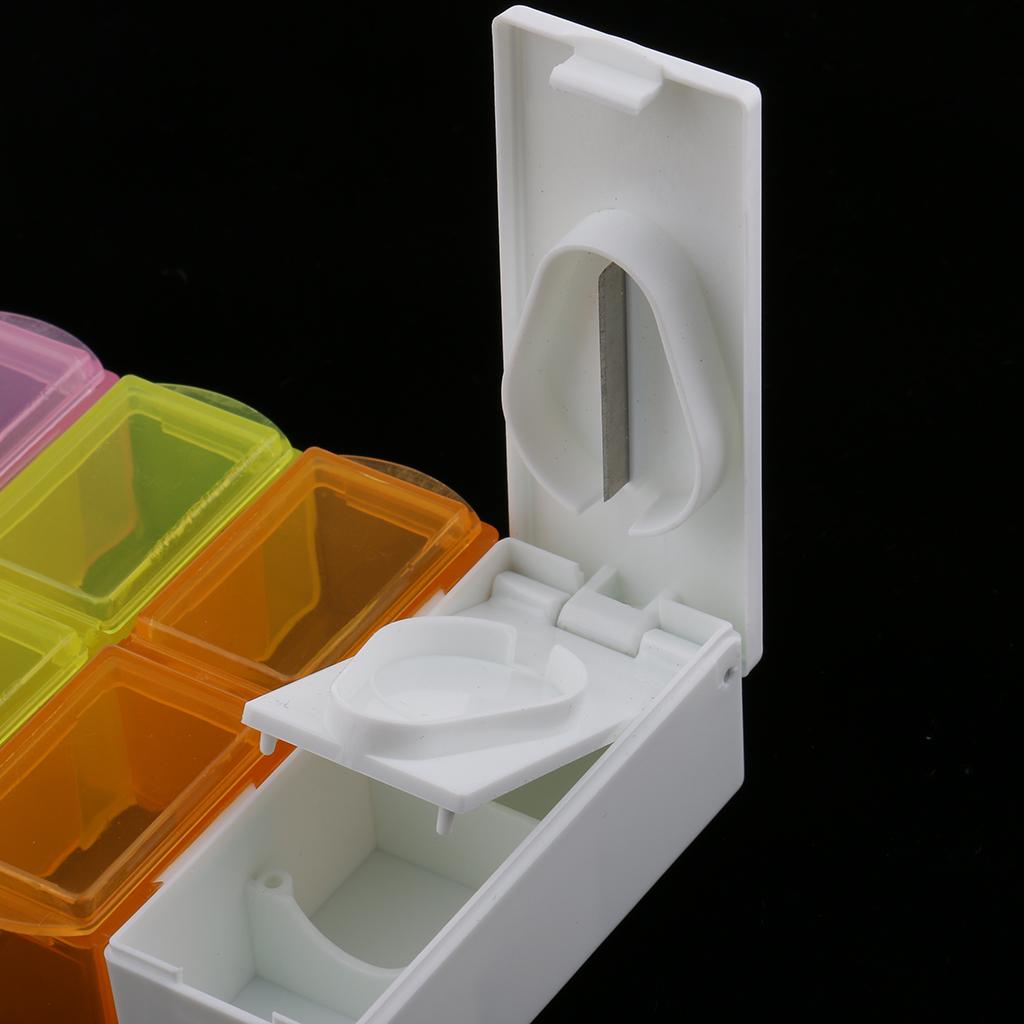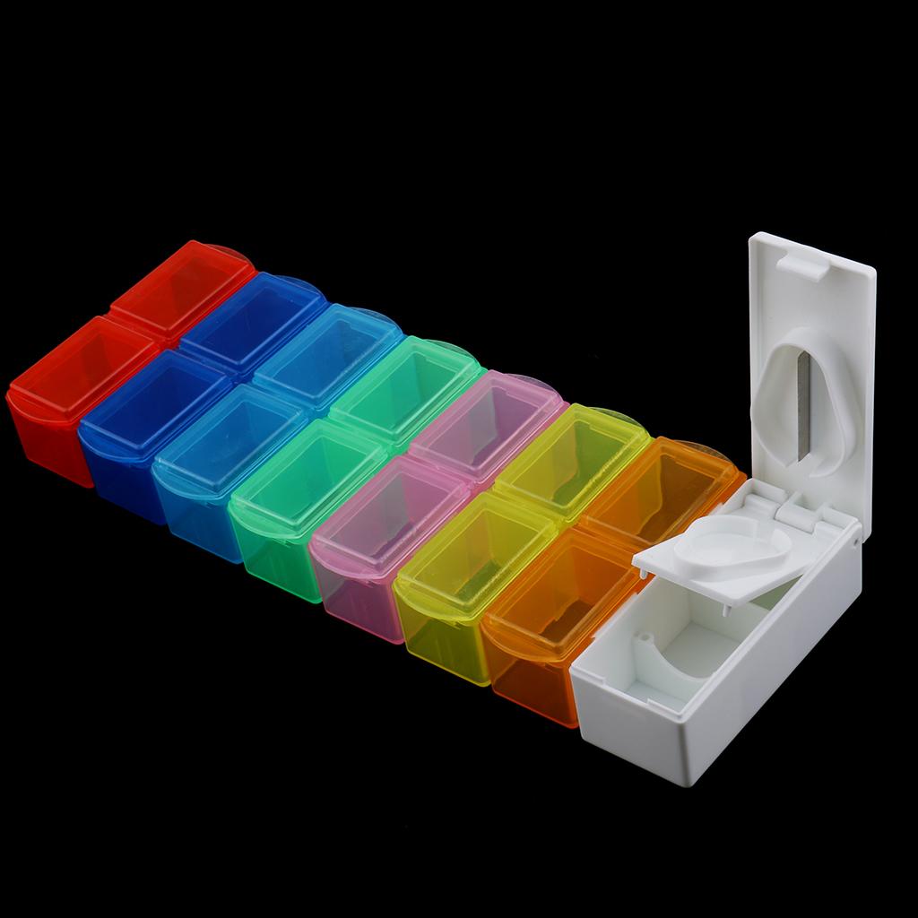 14 Compartments 7 Day Pill Organizer Box Weekly Case with Pill Splitter Cutter - Large Travel Medication Reminder Medicine Dispenser Twice a Day
