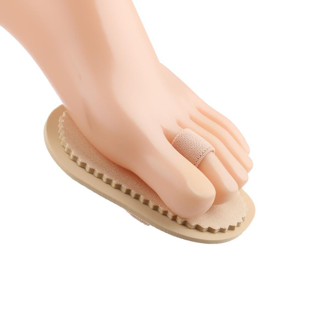 • Put your deforming, overlapping or mallet toes through the elastic band. Adjust to fit by pulling the end of the band under the EVA pad.