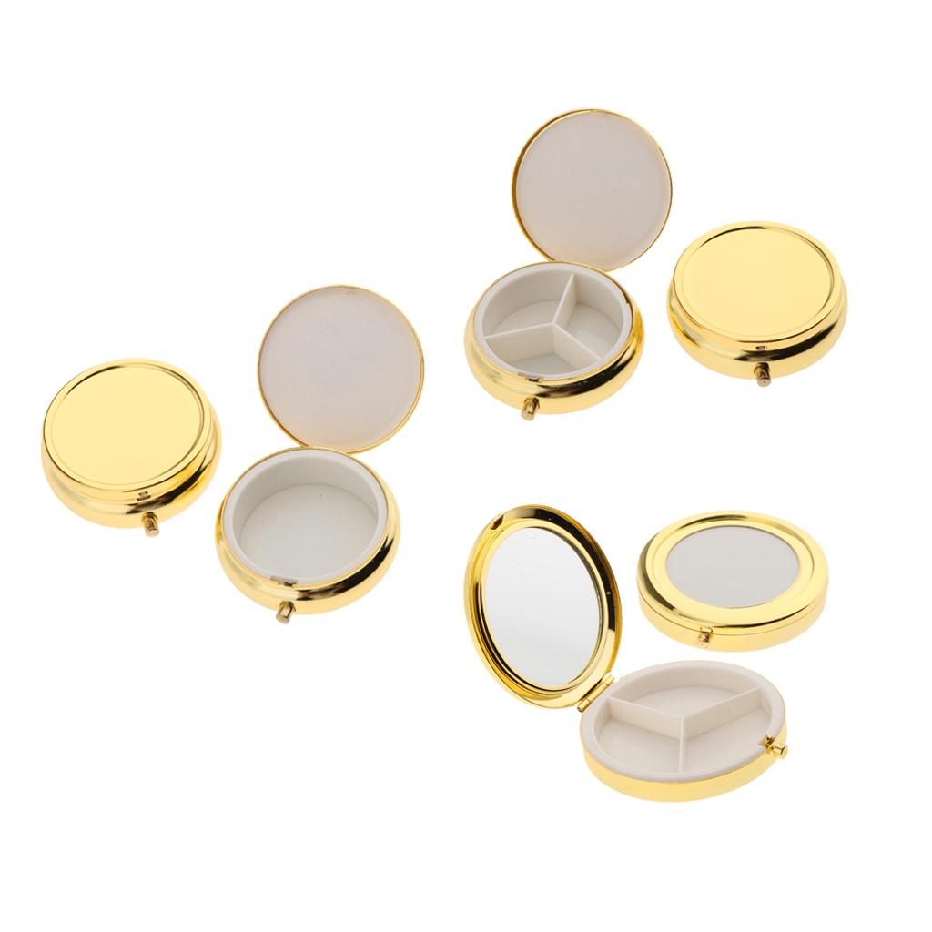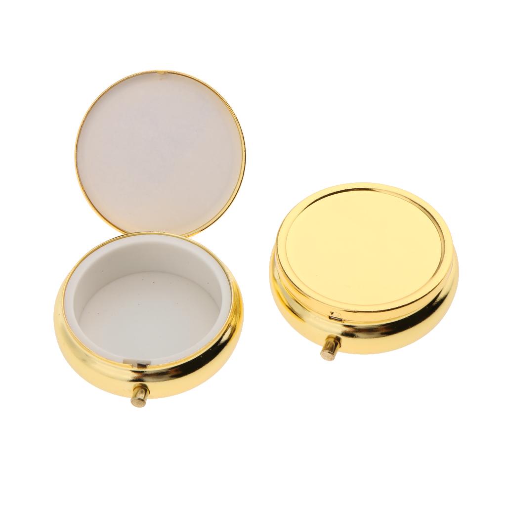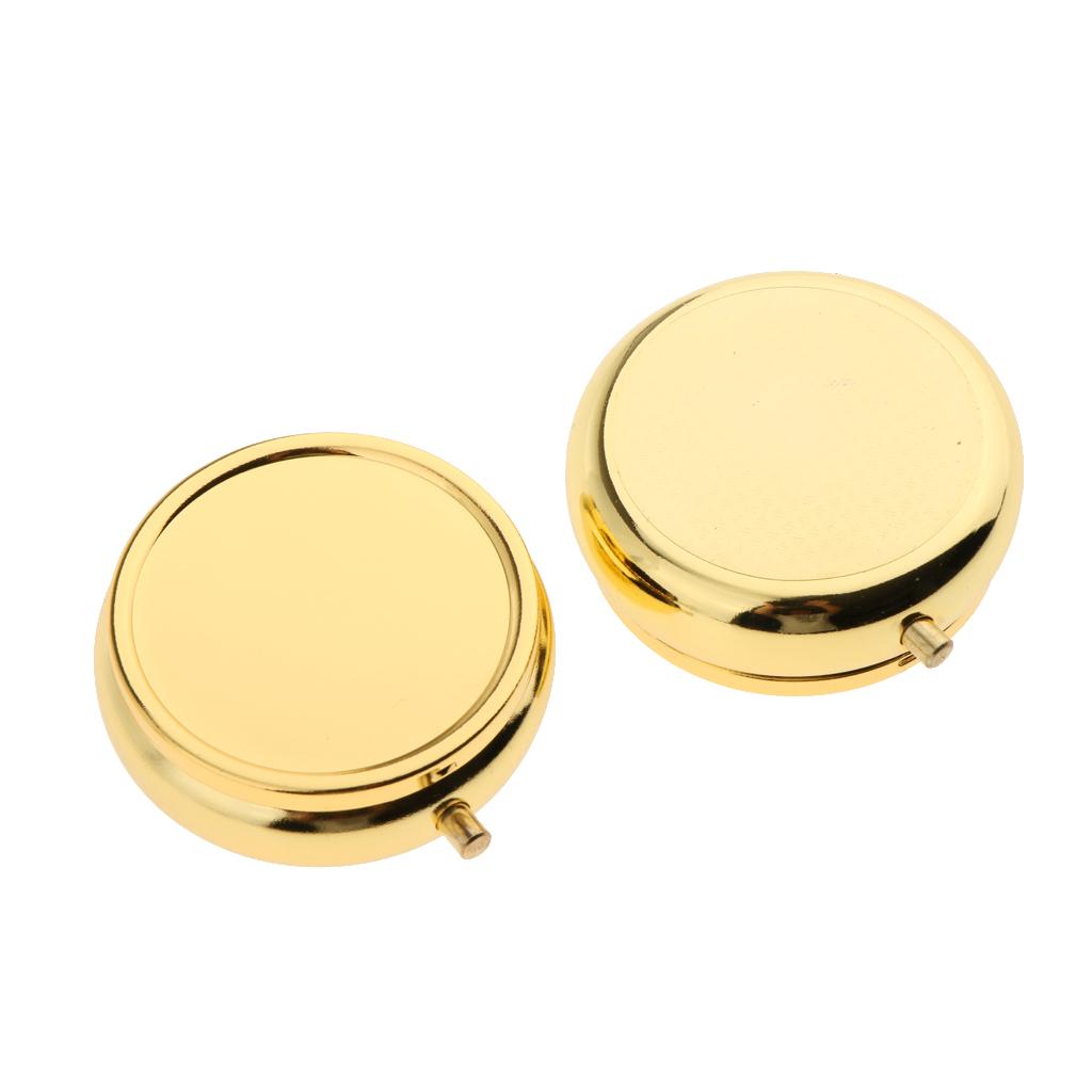 2 Pieces Portable Vitamin Organizer Medicine Tablet Box Gold 1 Compartment