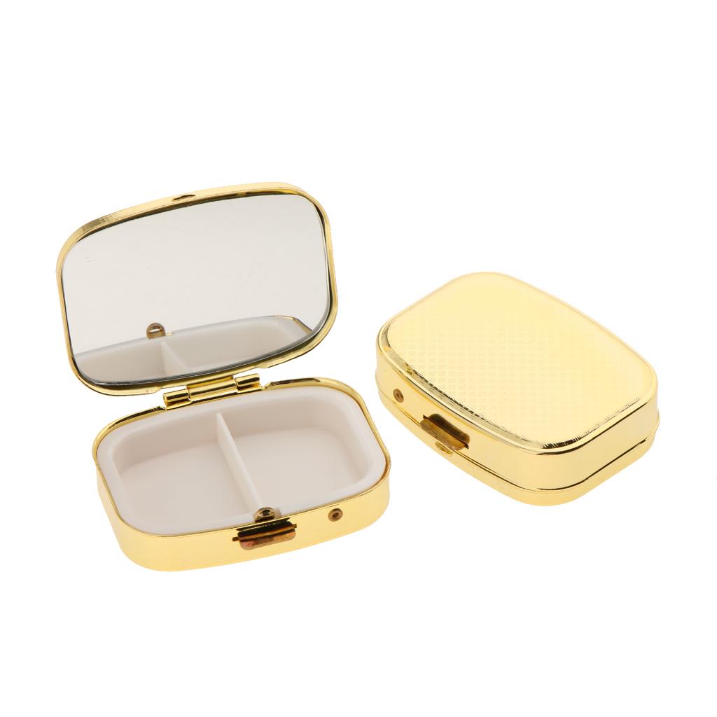 2pcs Metal Pill Box Case, Tablet Holder Storage Organizer Container with 2 Parts, made of Metal