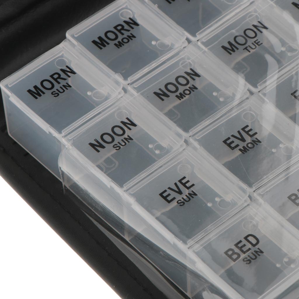 Our pill organizer can be used as a 14 day or 7 day medication planner. This weekly pill reminder comes with snap shut lids that indicate the day of the week with letter.