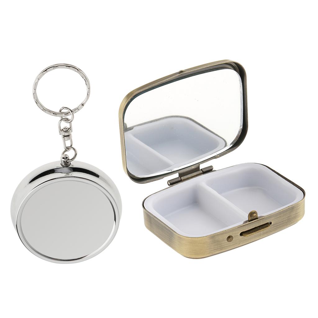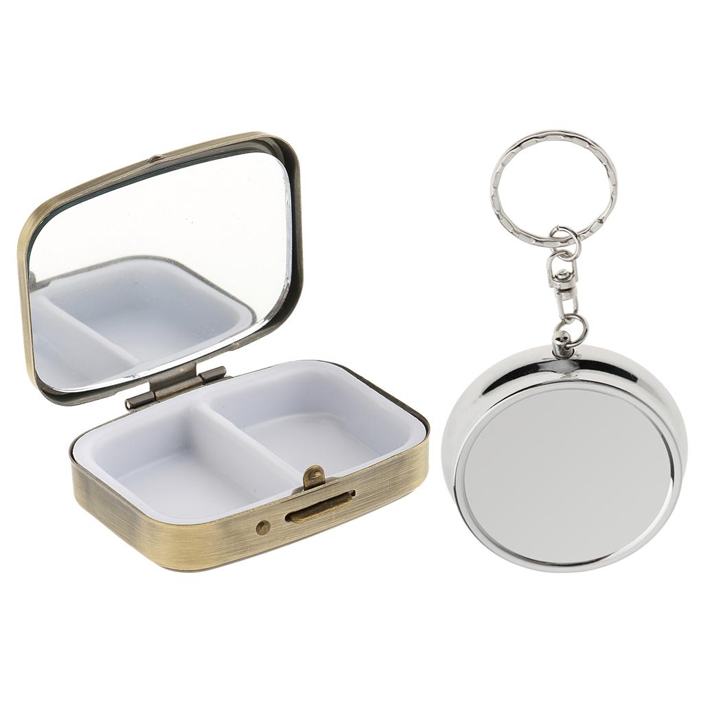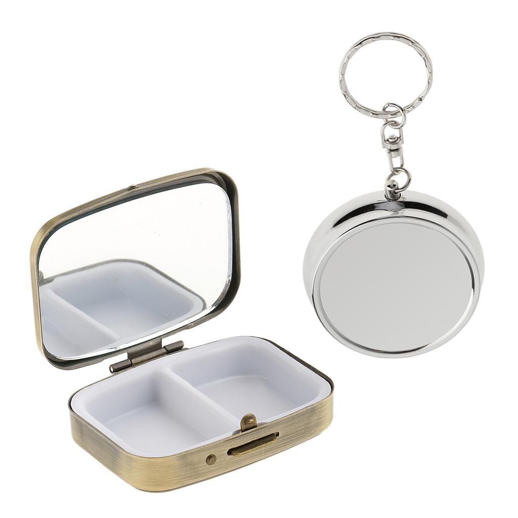 One is 3 compartments and round shape with chain, another is 2 compartments.Come with mirror, also can be used as trinket, earring, jewelry, makeup storage box.