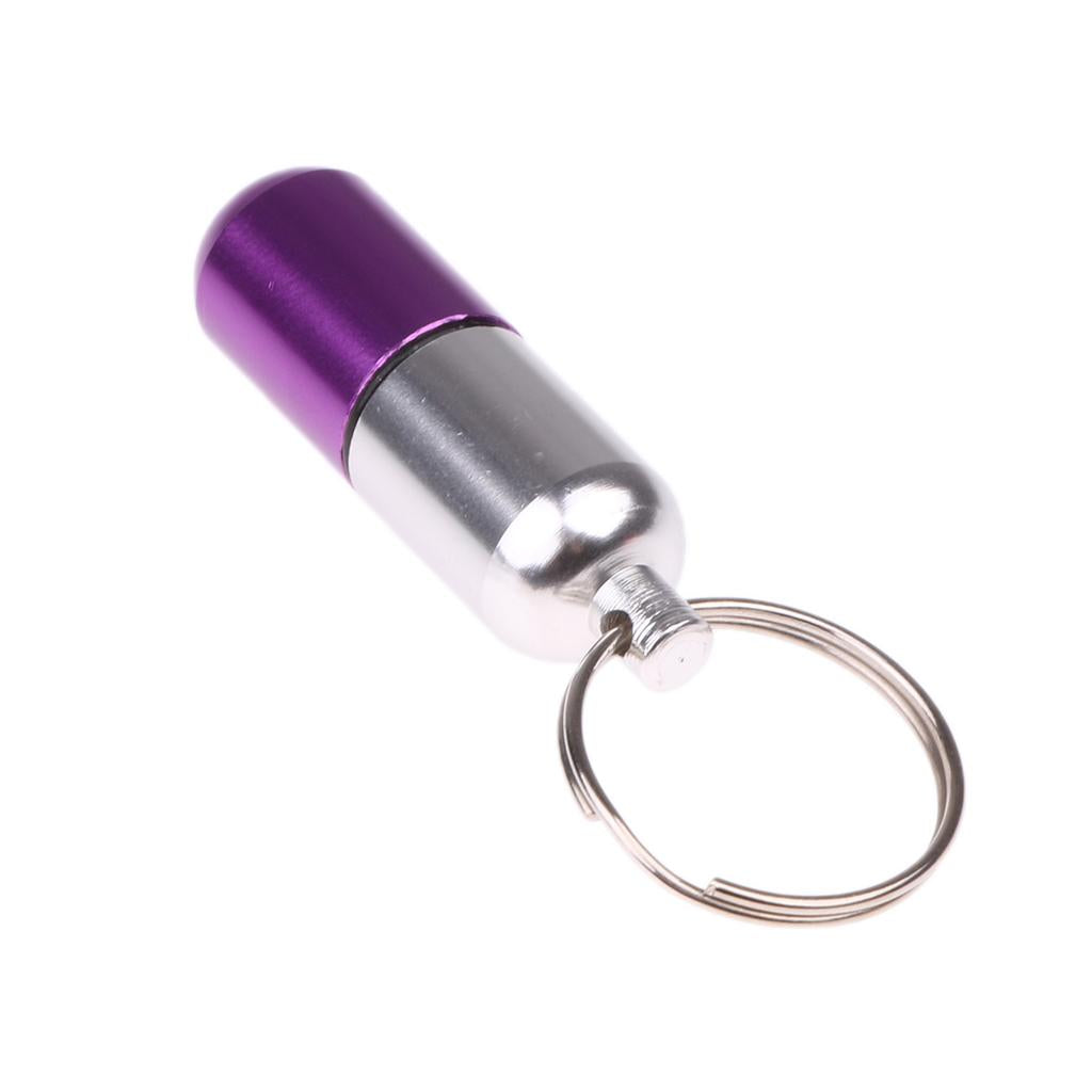 Heavy duty rugged alloy pill fob with keychain. Each pill container has a screw-on cap with a rubber O-ring seal to keep medications airtight and moisture-free. The pill fob is perfect for holding tablets, aspirin, vitamins, and pills that must be taken during the day.
