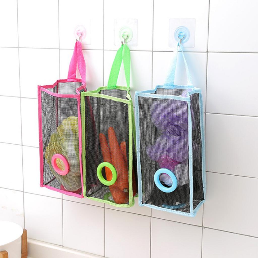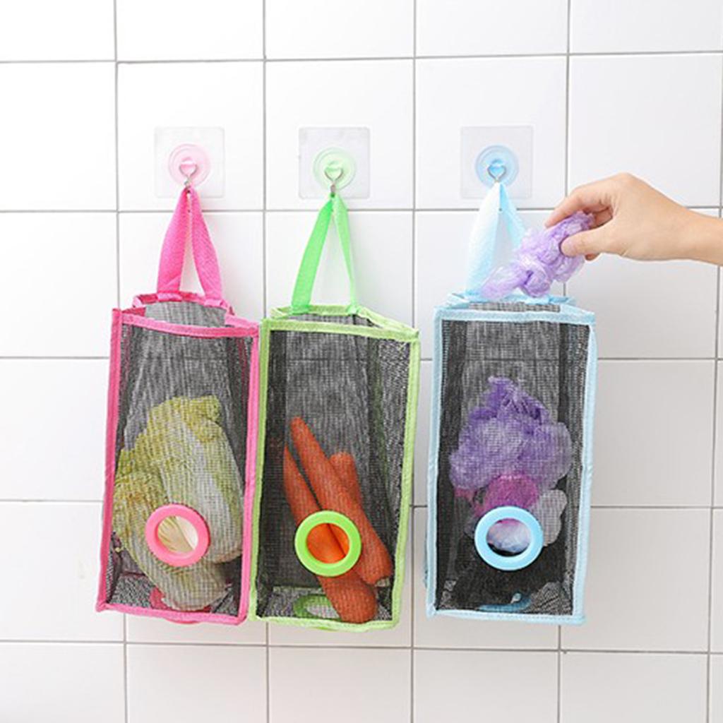 Durable,Reusable PVC Mesh hand/wall mounted bag with two ventilate holes for shopping and goods storaging.