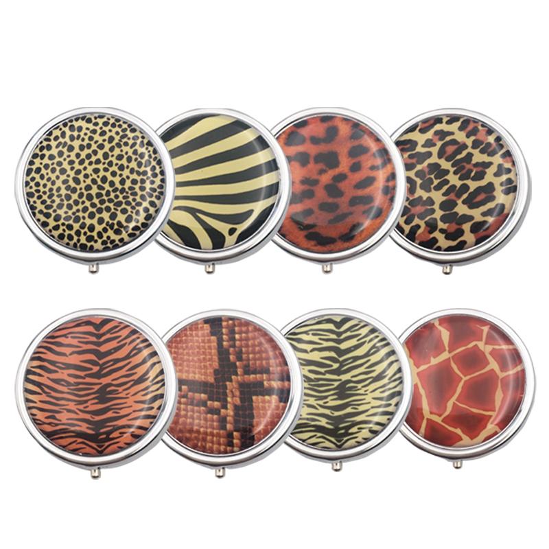 Giraffe Pattern Pill Case Box Storage Organizer Container w/ Internal Mirror
