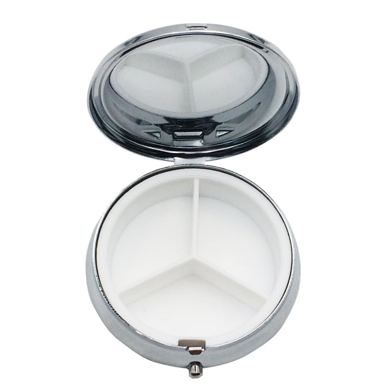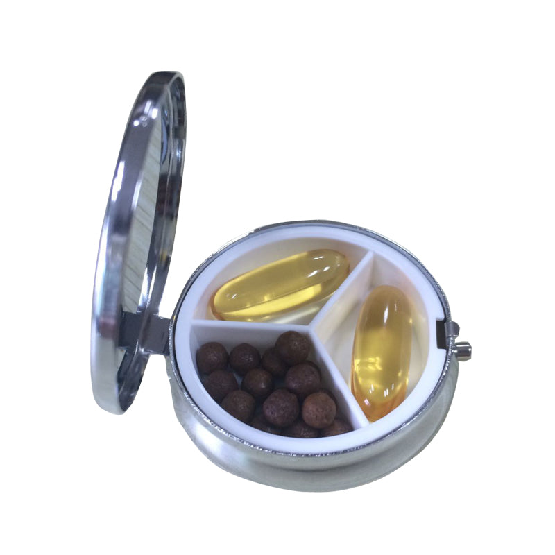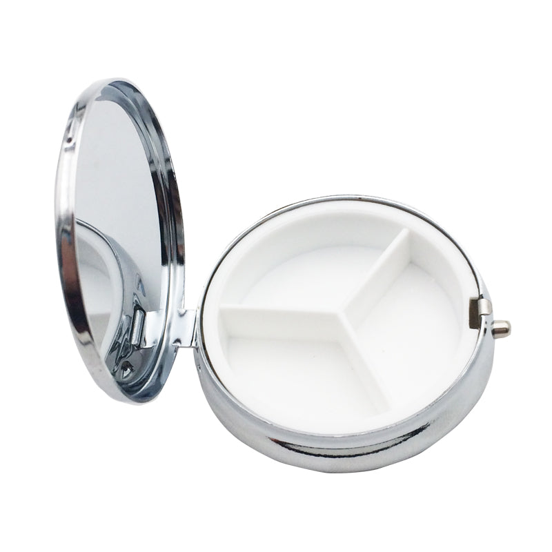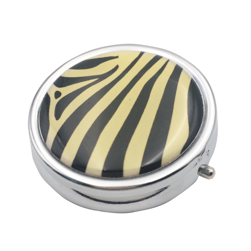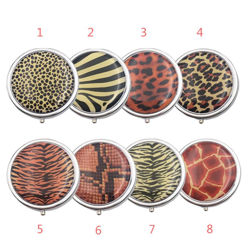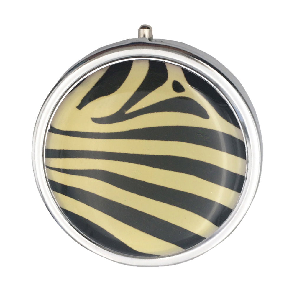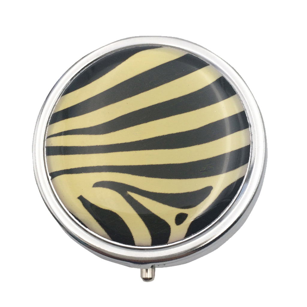 Striped Print Pill Case Box Storage Organizer Container with Internal Mirror