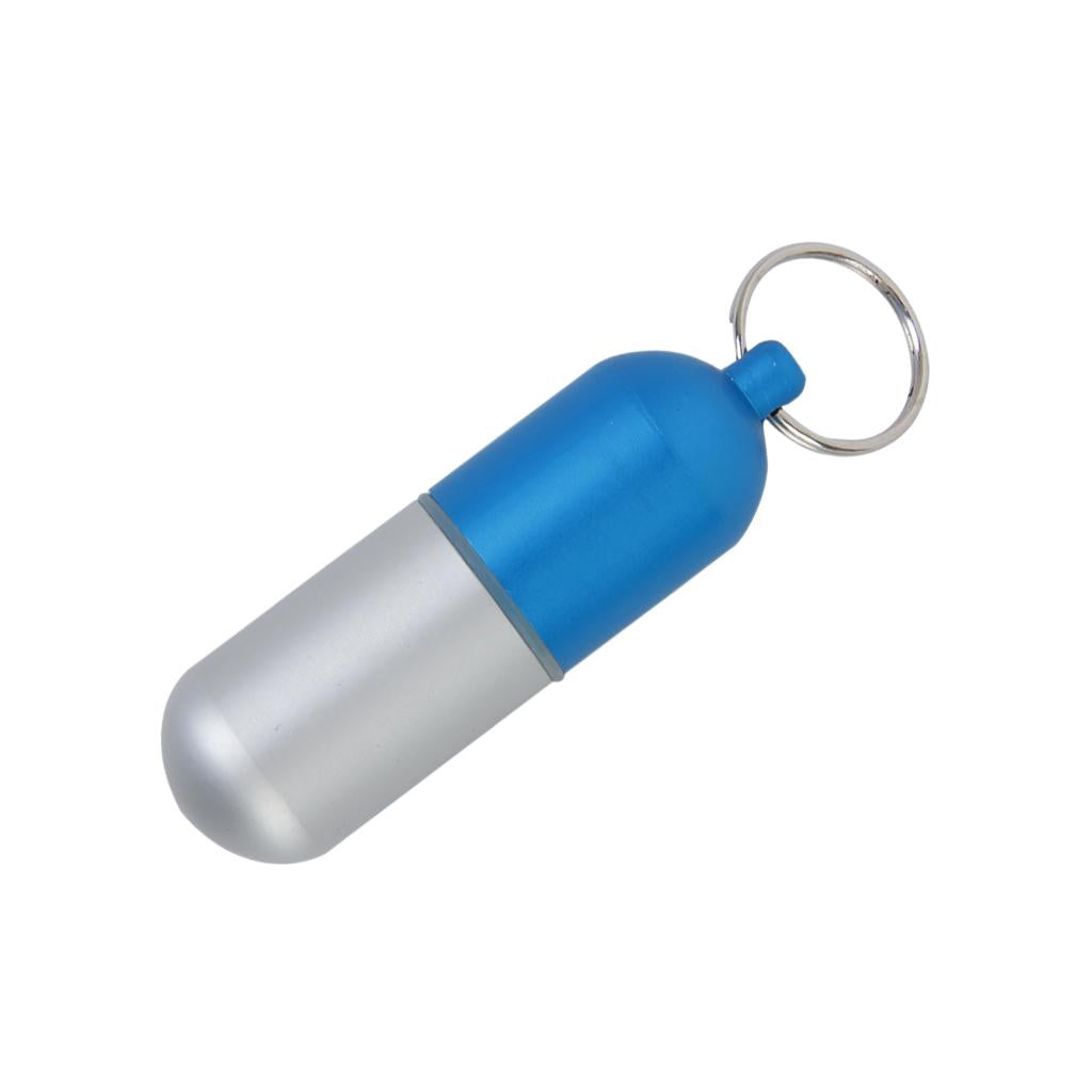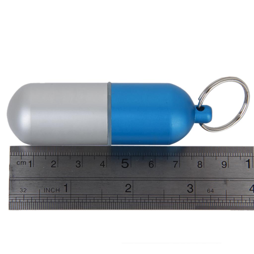 Heavy duty rugged alloy pill fob comes with keychain. Each pill container has a screw-on cap with a rubber O-ring seal to keep medications airtight and moisture-free. The pill fob is perfect for holding tablets, aspirin, vitamins, and pills that must be taken during rainy days.