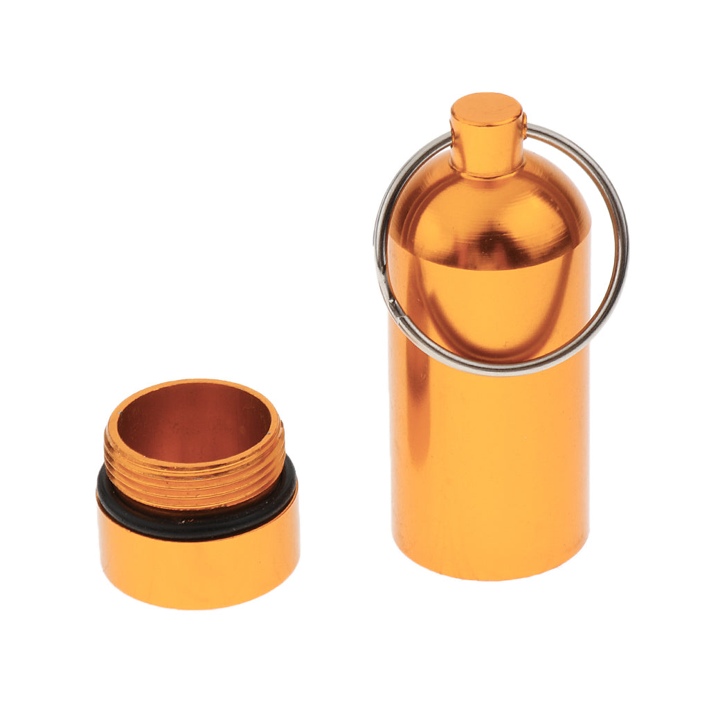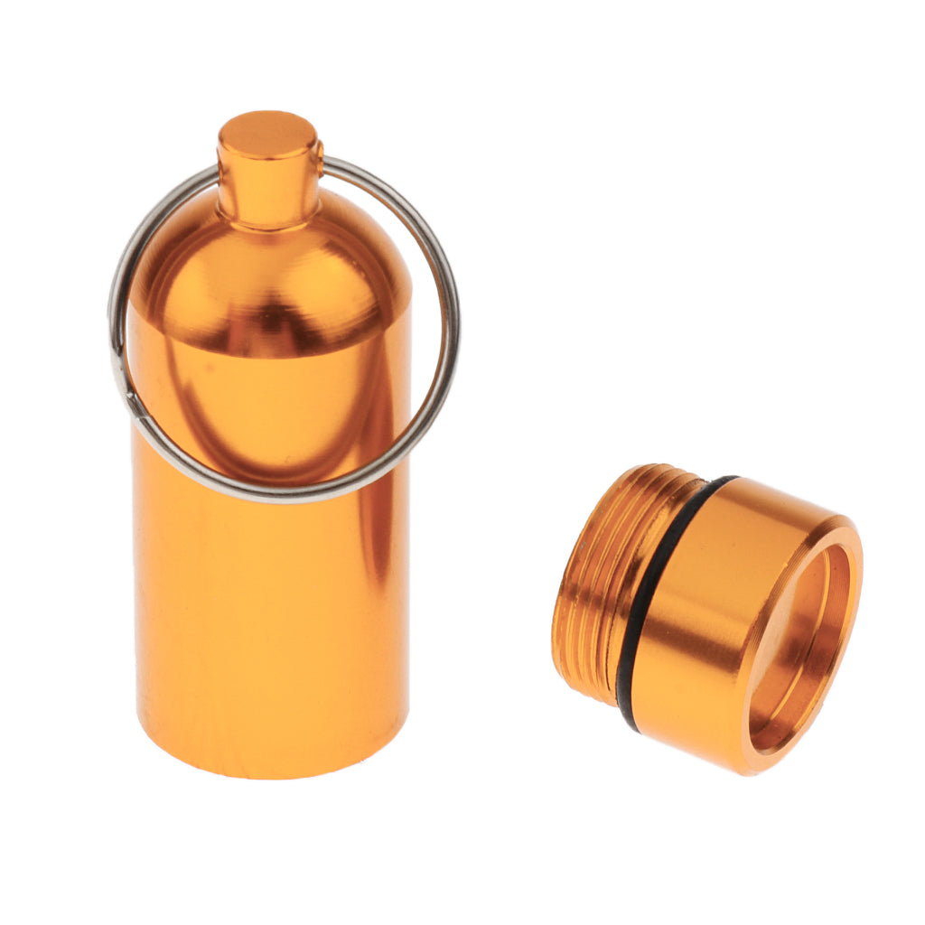 With seal O-ring, screwing open cover, can put pills, tablets, small flint, matches etc