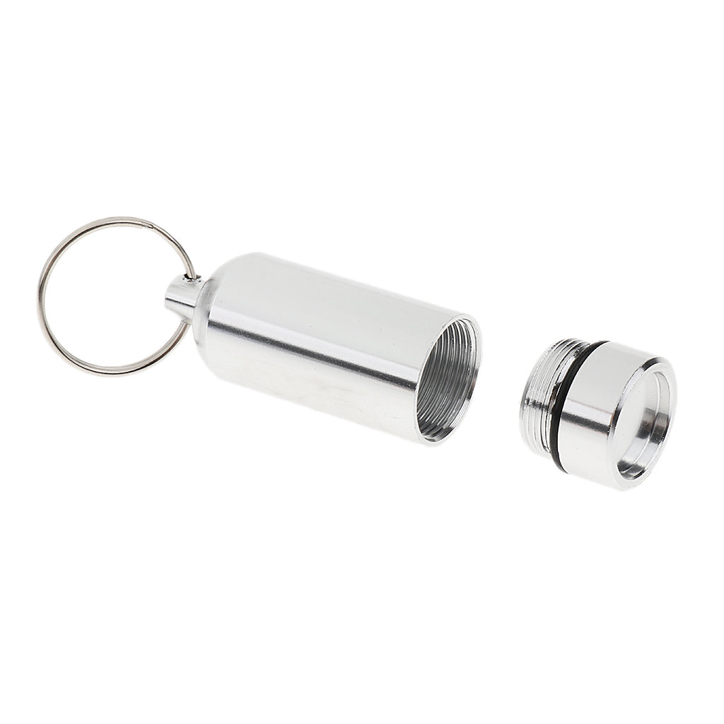 With seal O-ring, screwing open cover, can put pills, tablets, small flint, matches etc