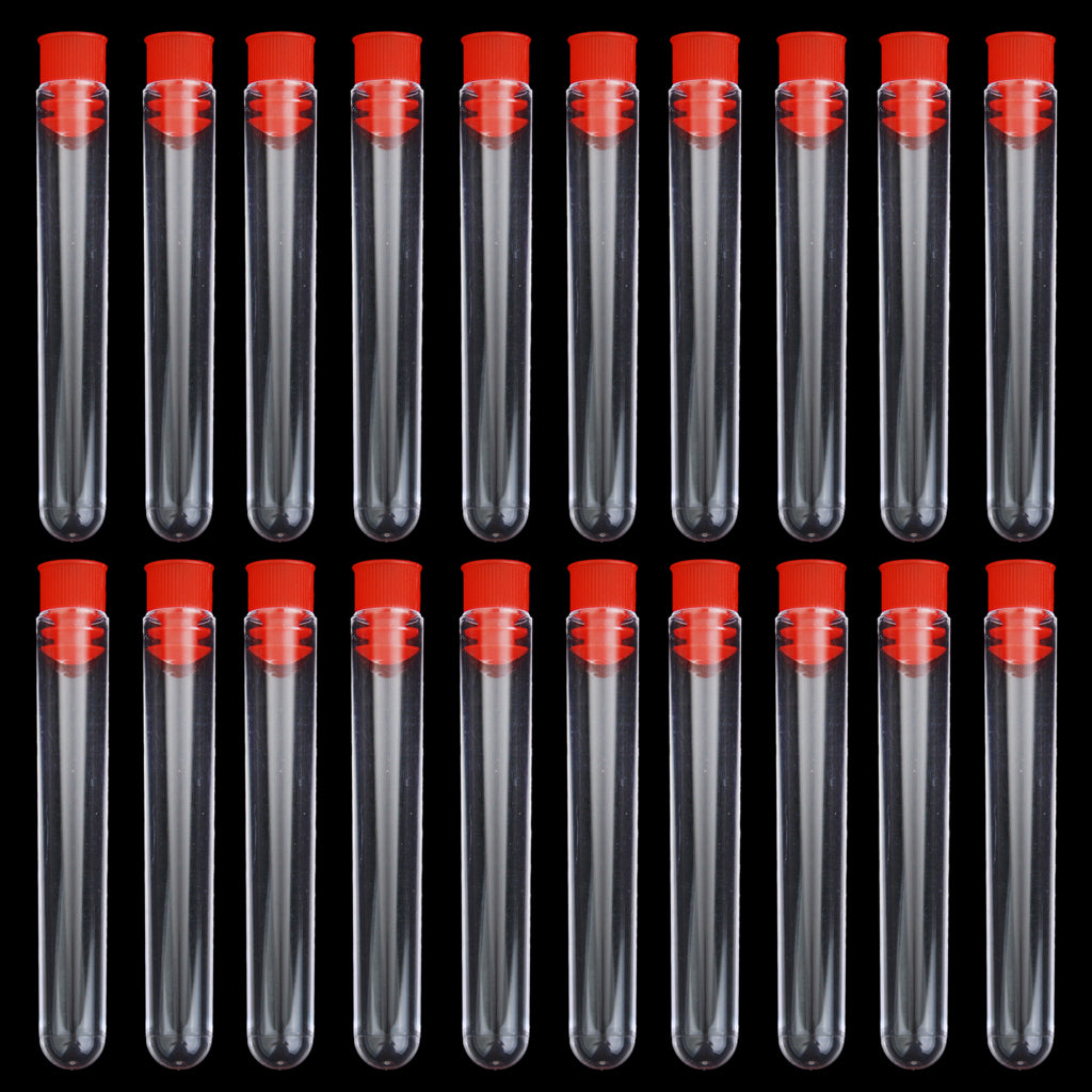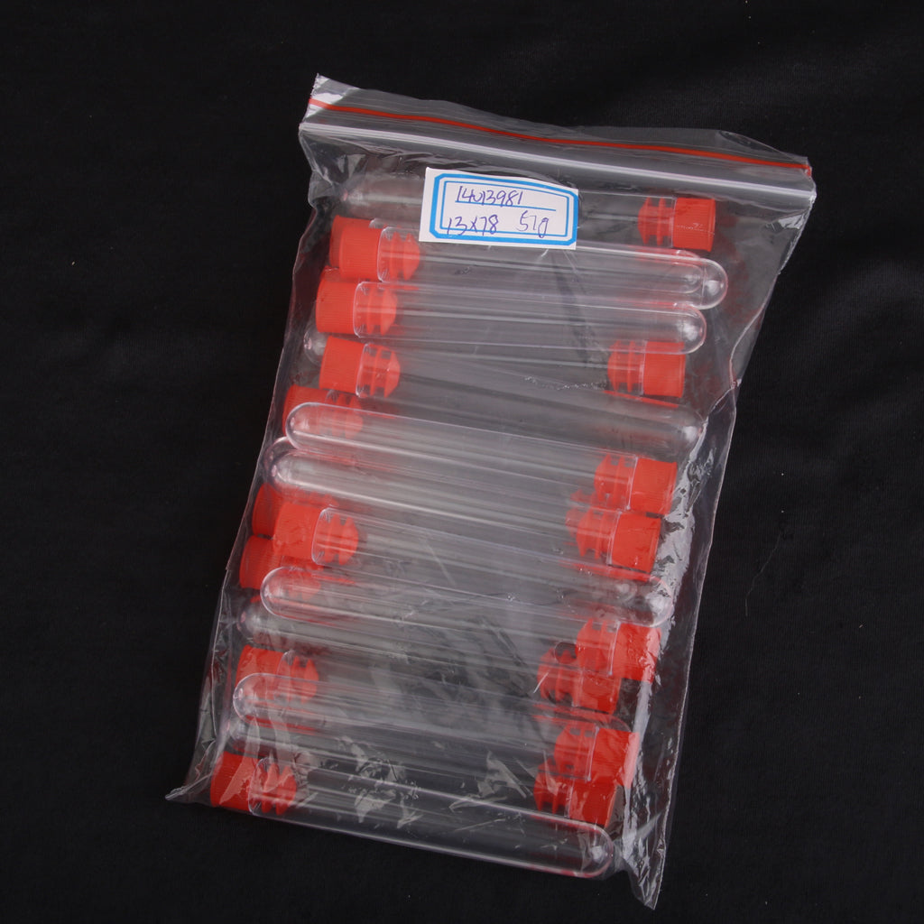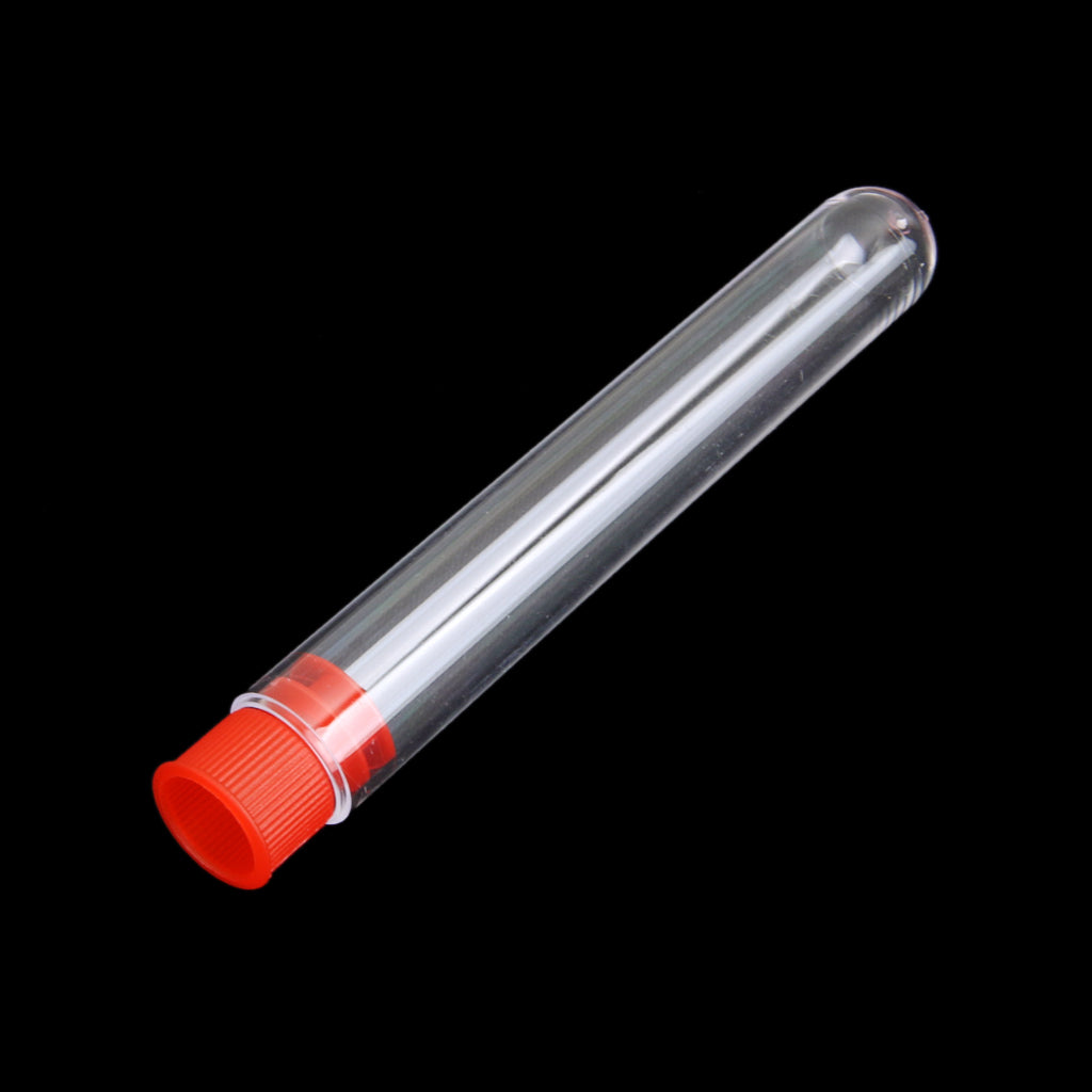 Plastic test tubes for laboratory tests, Round Bottom with screw caps on the top