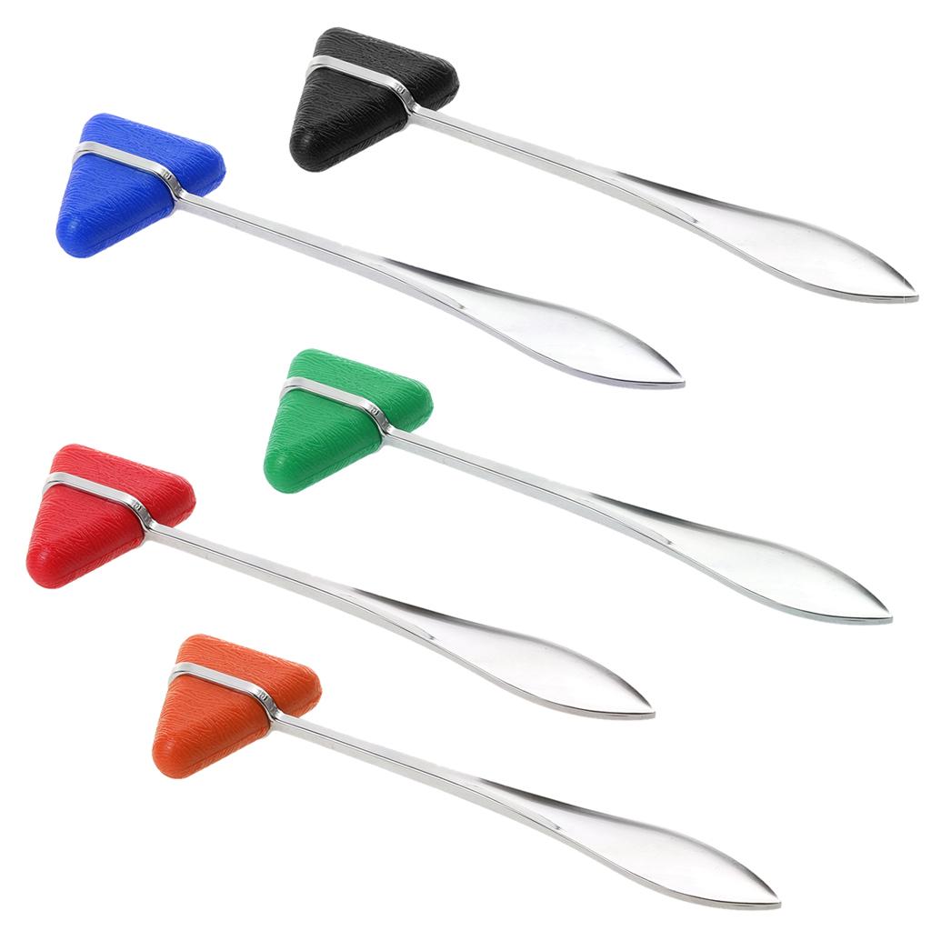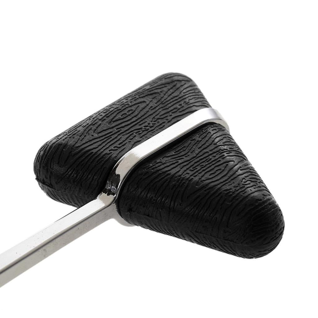 • Thermo-plastic-rubber triangular head has beveled apex and base employed to elicit myotatic reflex.
