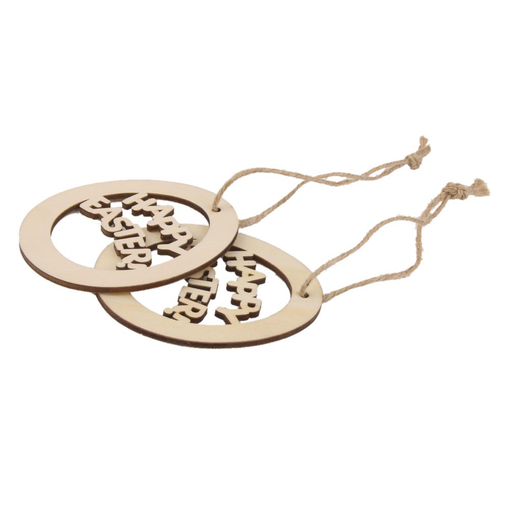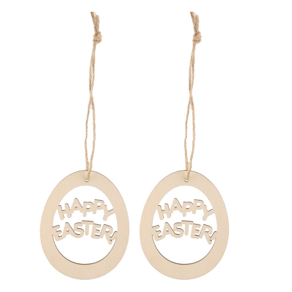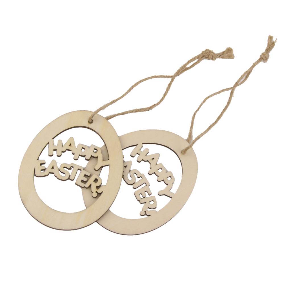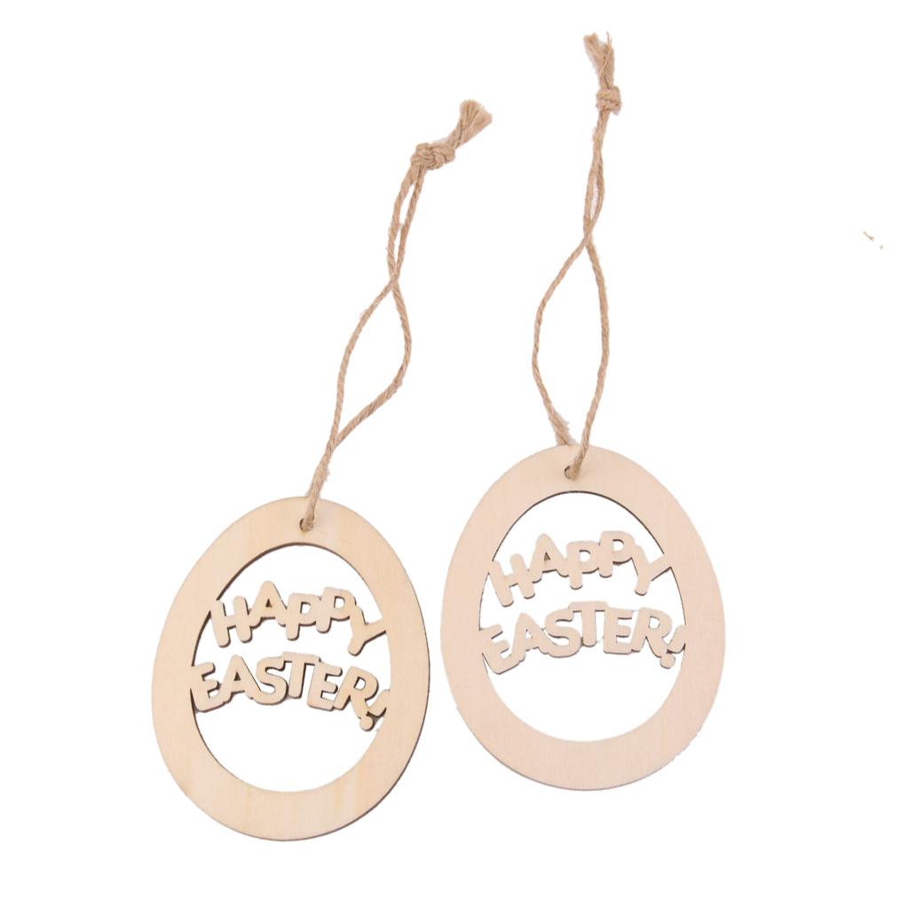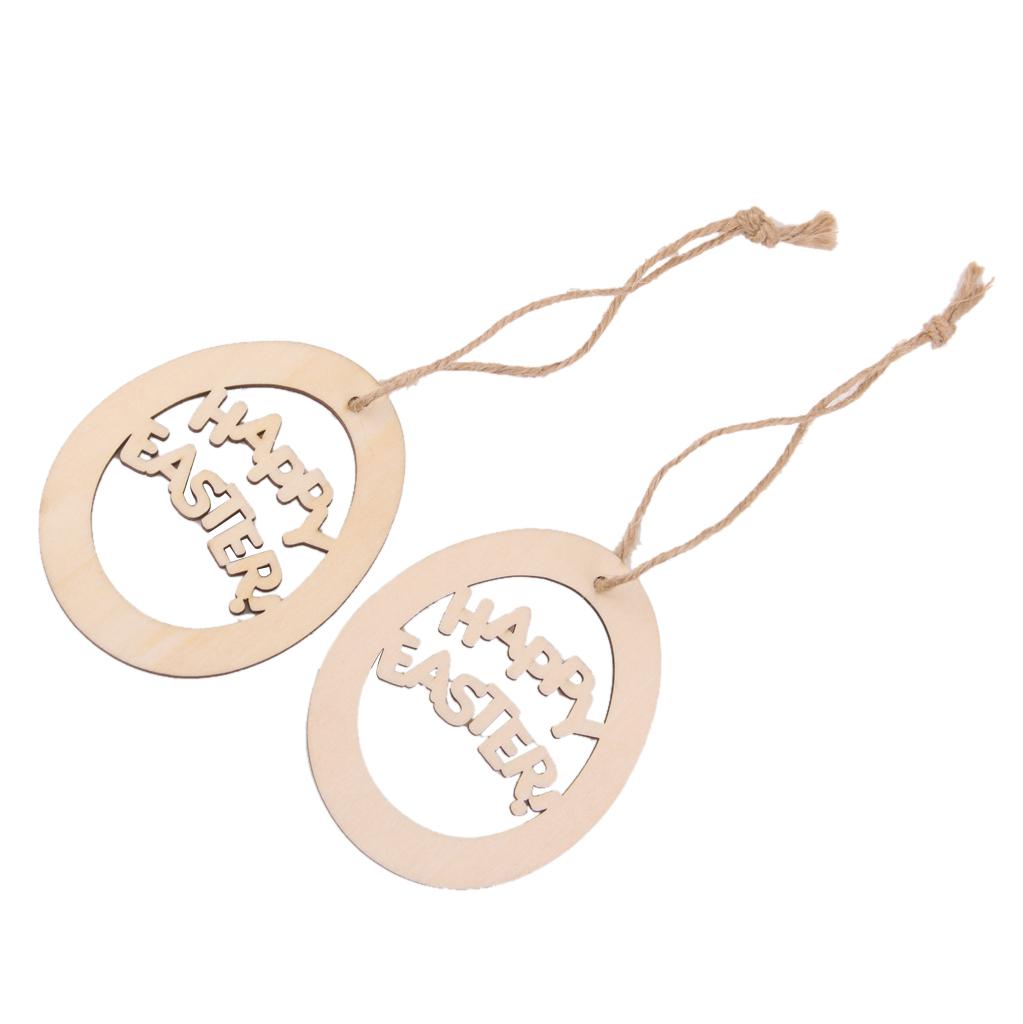 10pcs Laser Cut Happy Easter Egg Wooden Embellishment with String