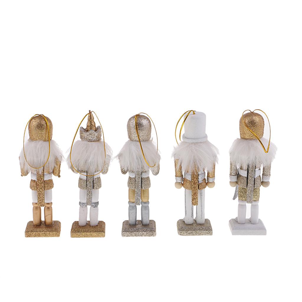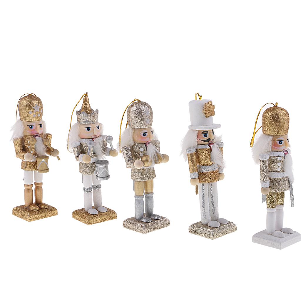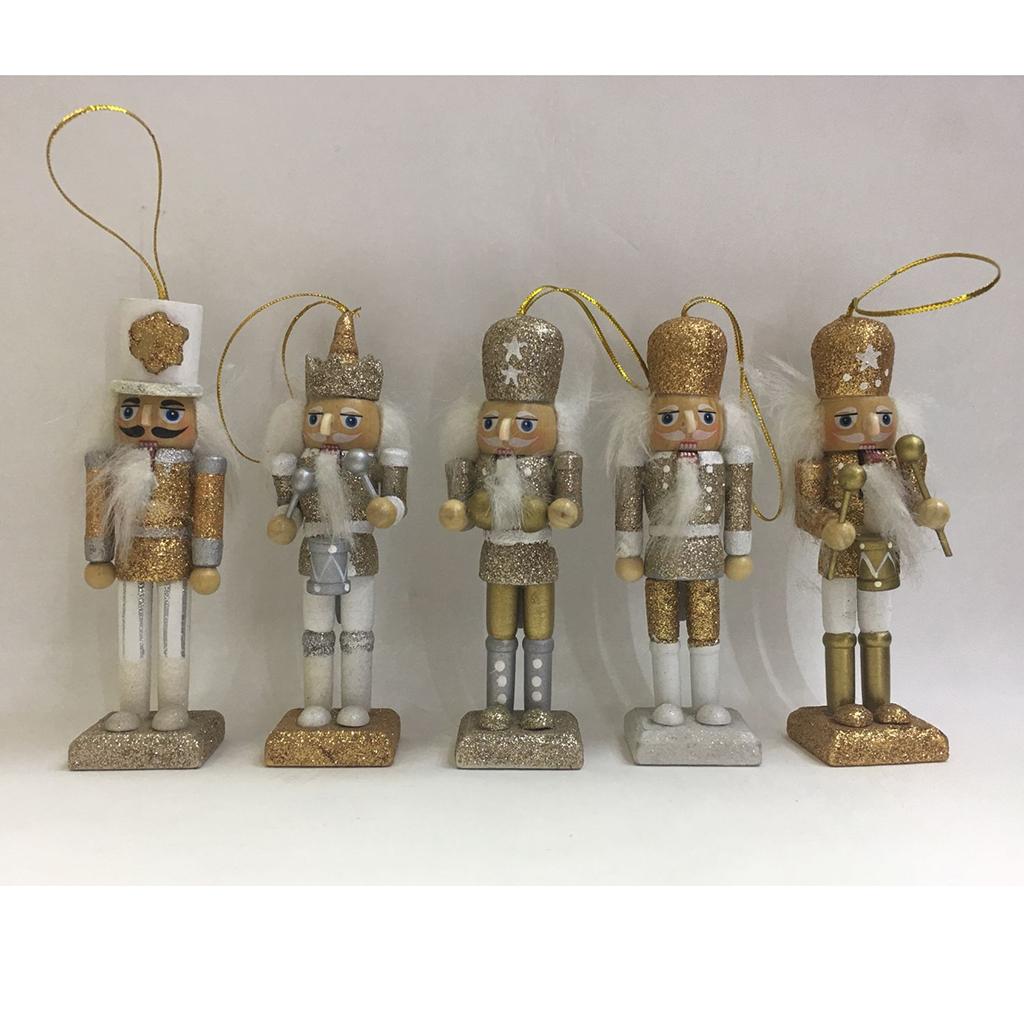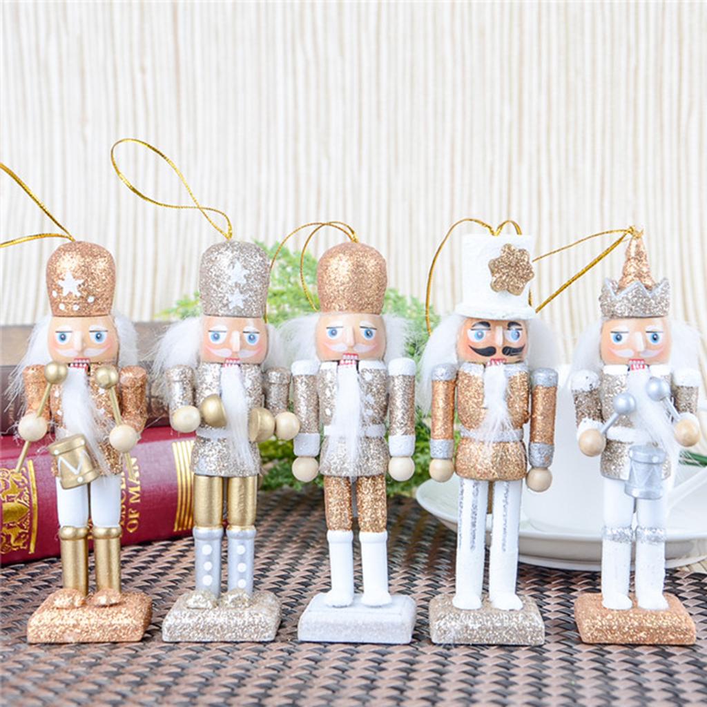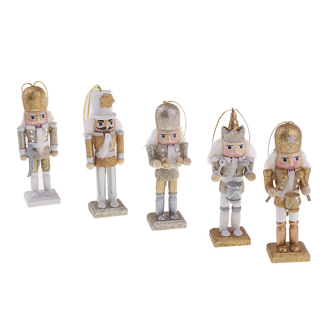 5Pcs 12cm Wooden Nutcracker Solider Figure Model Puppet Doll Handcraft for Children Gifts Christmas Home Office Decor Display