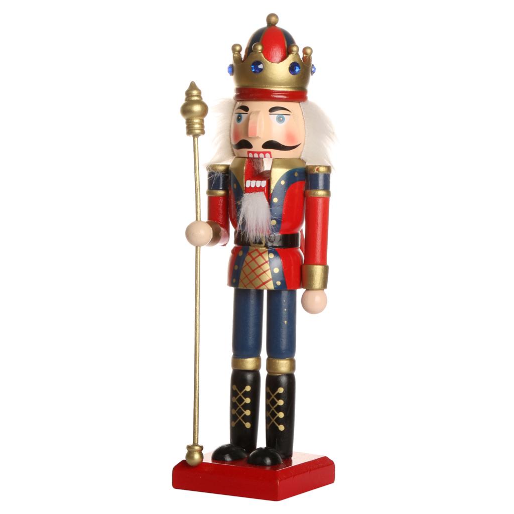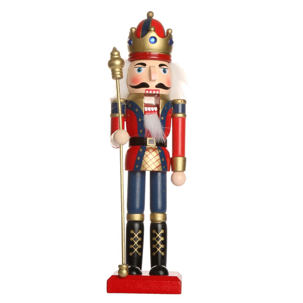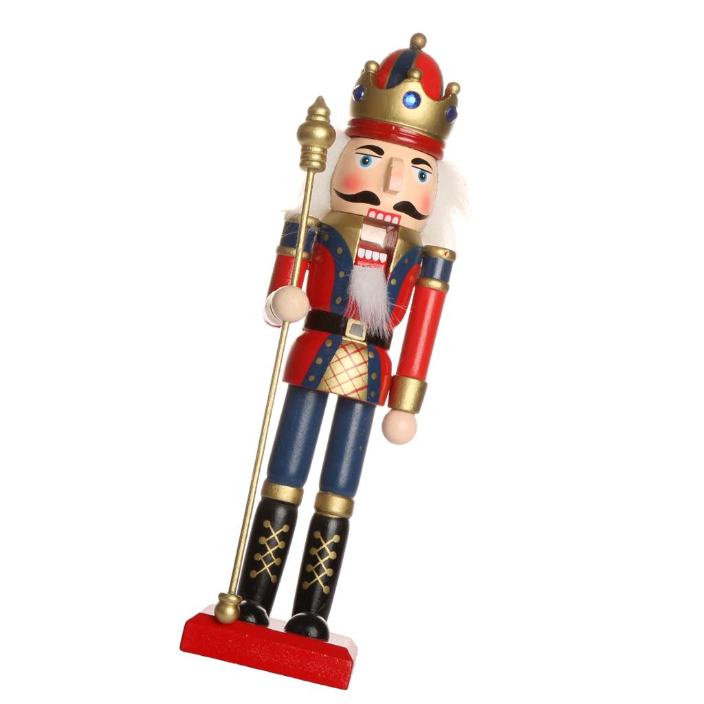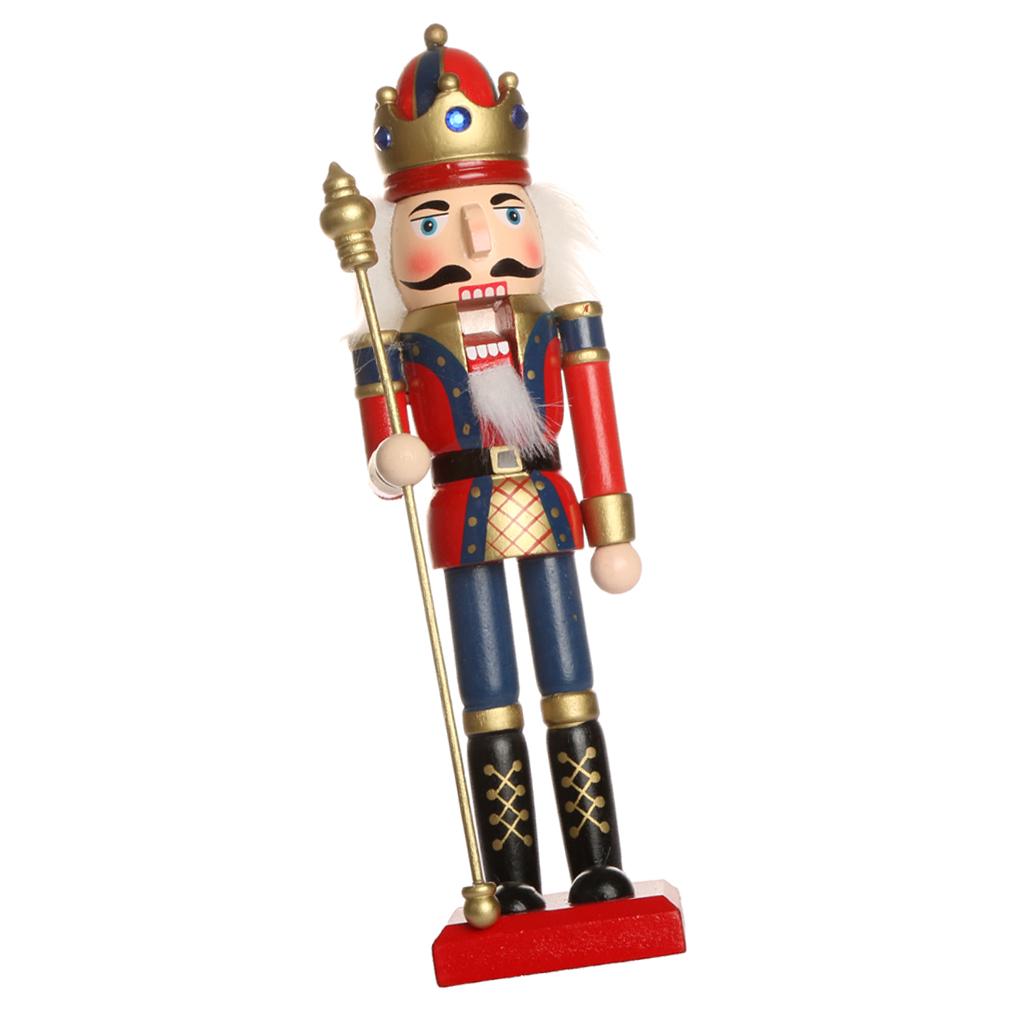 Handpainted Standing Wooden Nutcracker King with Scepter Christmas Ornament Party Prop Collectibles