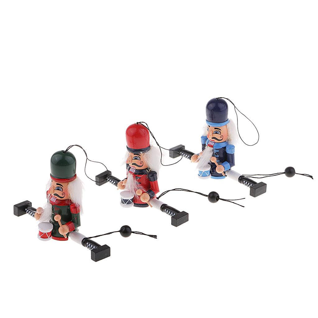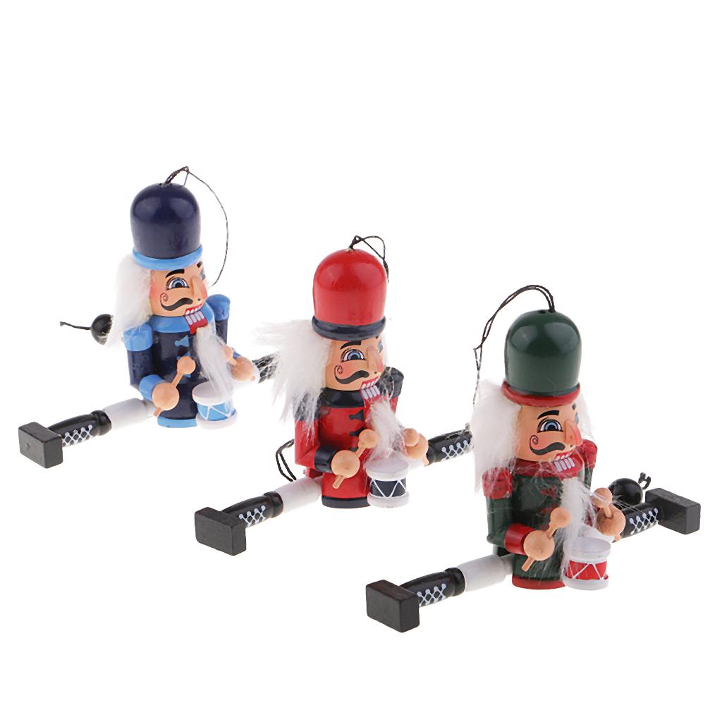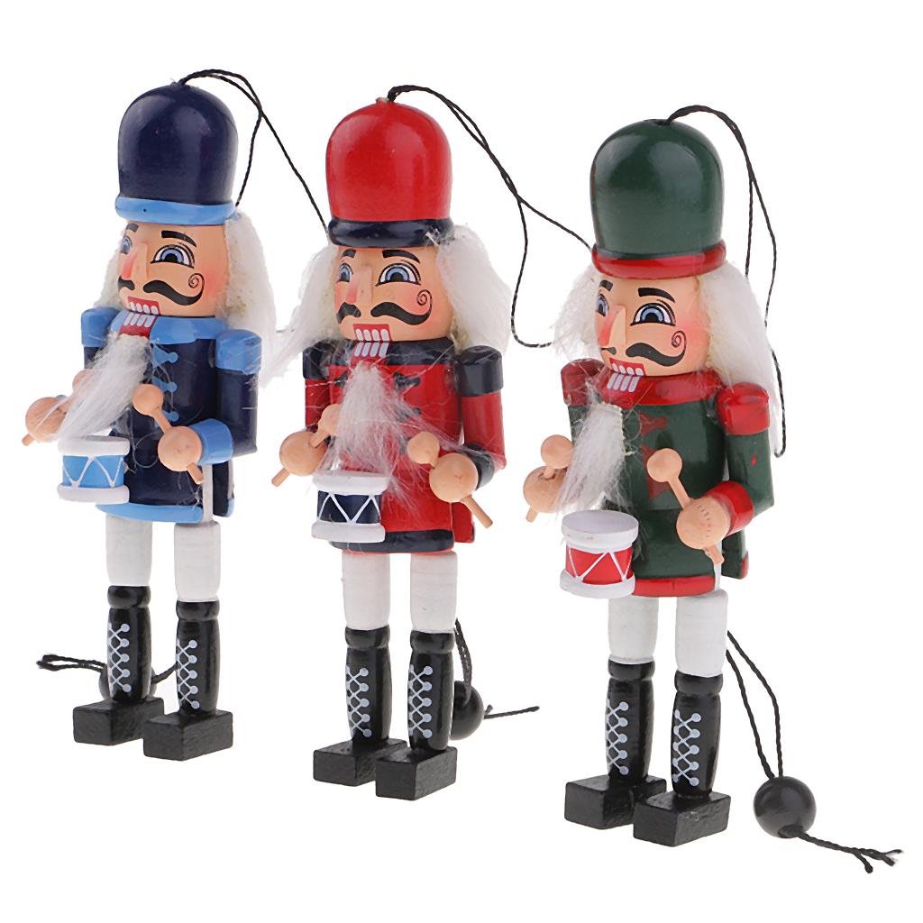 3 Pieces 13cm String Hanging Wooden Nutcracker Dolls