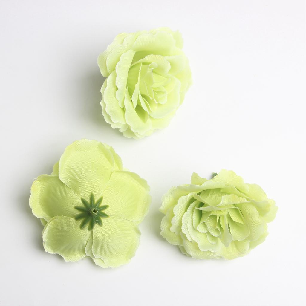 10pcs 7cm Artificial Silk Rose Flower Heads for Wedding Decoration Green