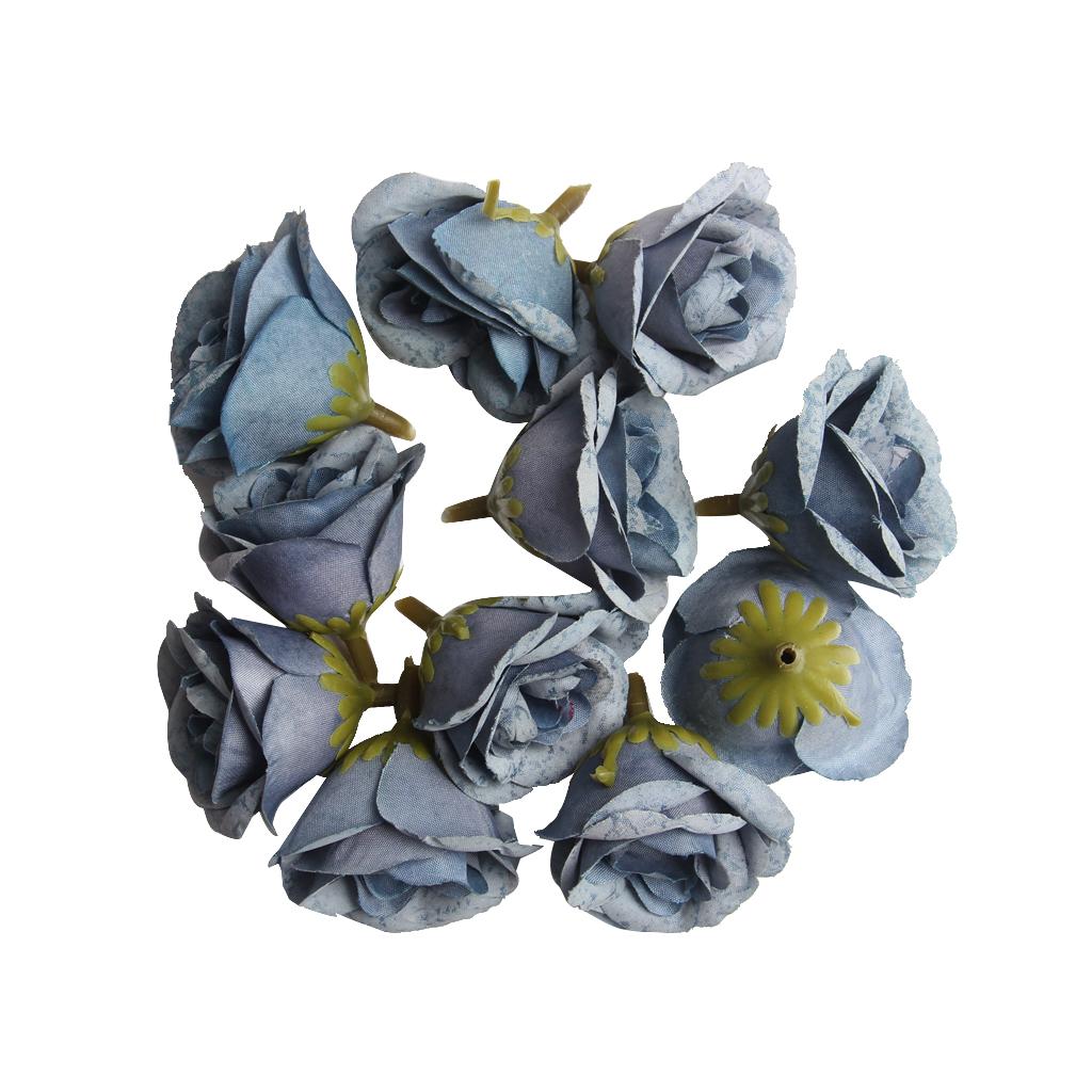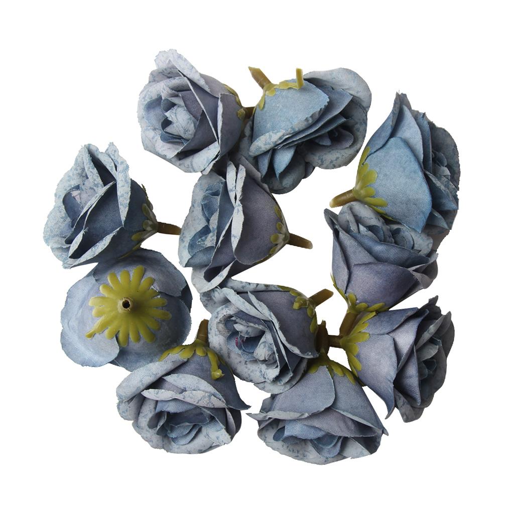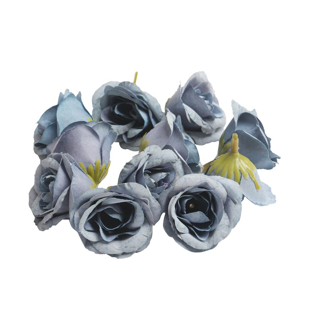 10pcs Artificial Silk Rose Flower Head for Wedding Party Decor Blue