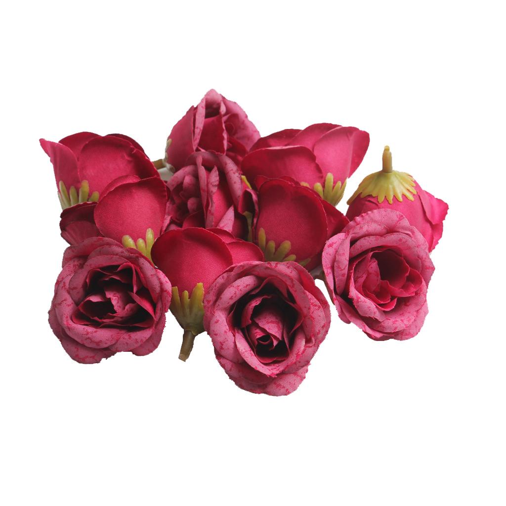 10pcs Artificial Silk Rose Flower Head for Wedding Party Decor Wine Red