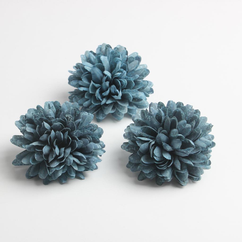 10pcs Silk Artificial Chrysanthemum Flower Heads for DIY Decor Deep Blue